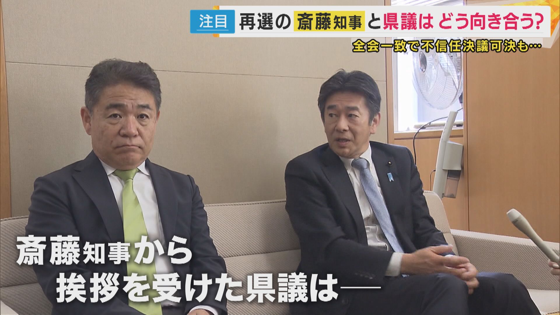 出直し選を制し、再び兵庫のリーダーとなった斎藤知事は20日、県議会の各会派に就任のあいさつをしました。不信任を突き付けた県議らはどう受け止めたのでしょうか。