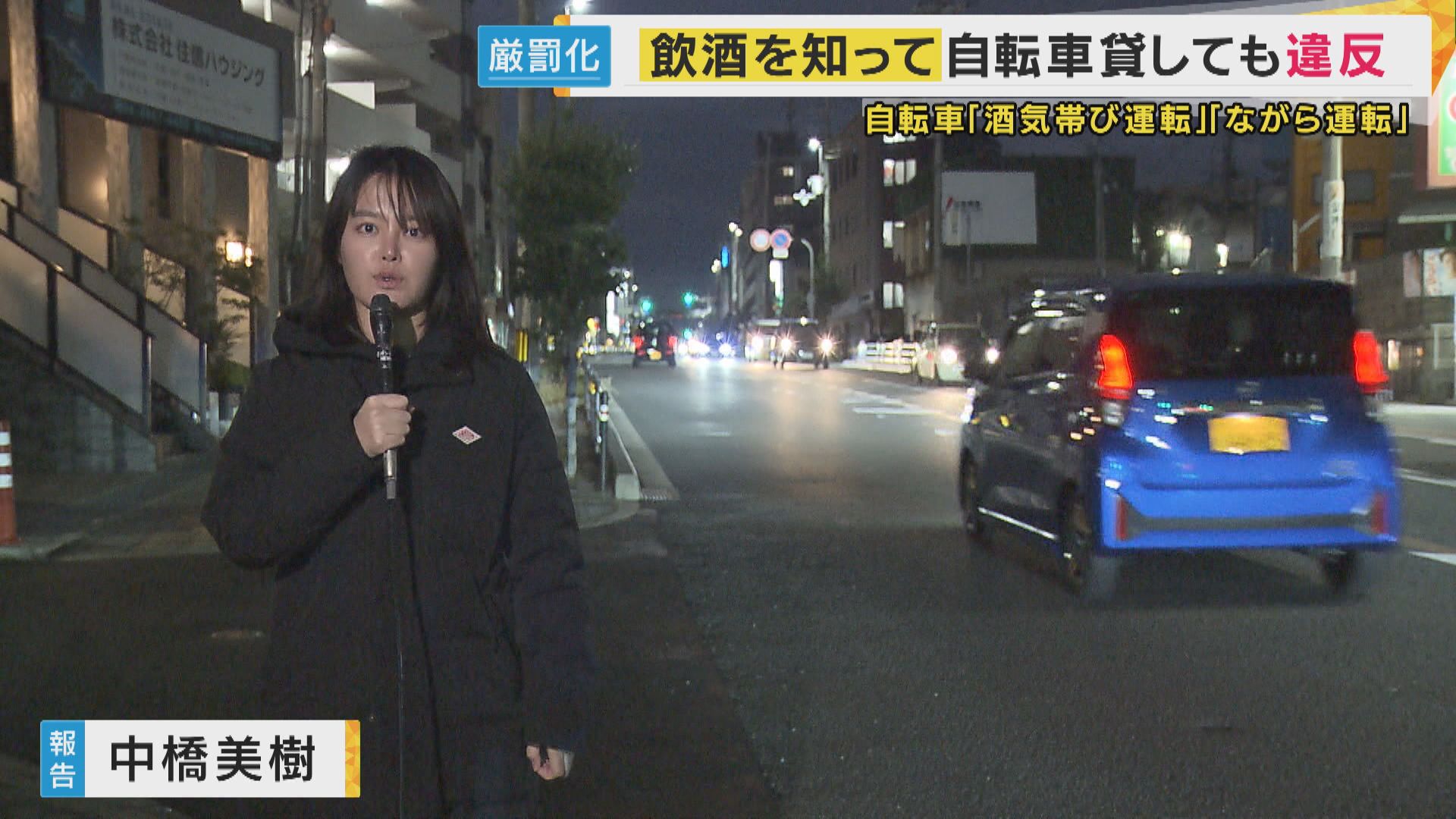 11月から罰則が強化された自転車の違反に関する法律。 20日、大阪では、酒気帯びと知って知人に自転車を貸した男が書類送検されました。厳罰化で意識は変わったのか?取材しました。