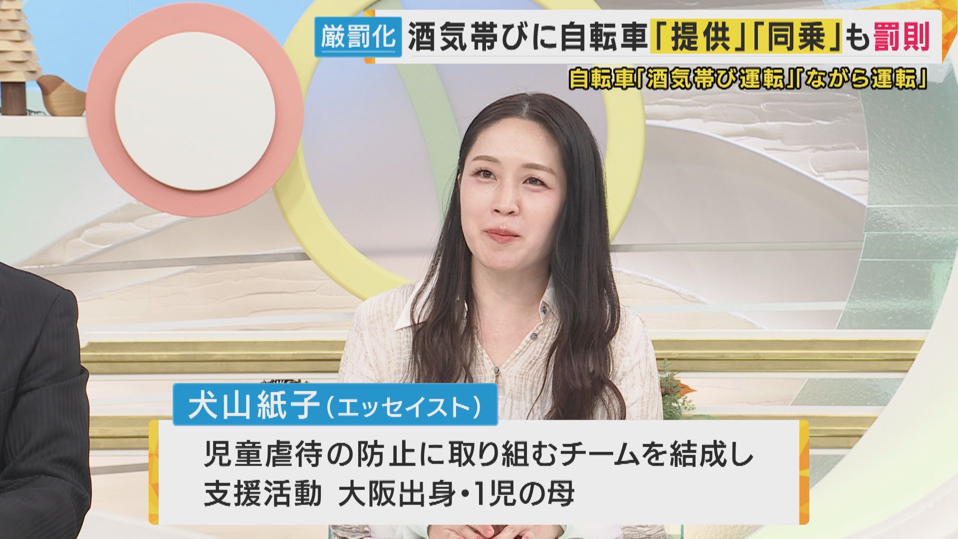 【エッセイスト 犬山紙子さん】「なんとなく自転車だと『ま、いいか』という気持ちがこれまであったような気がします。みんなでお酒を飲もうかというときに、『車の人いない?』とは聞くけど、『自転車の人いない?』とは聞いてこなかったなと思います。そこまで含めて、私たちが認識して周知させていくことが必要なんだと思いました」