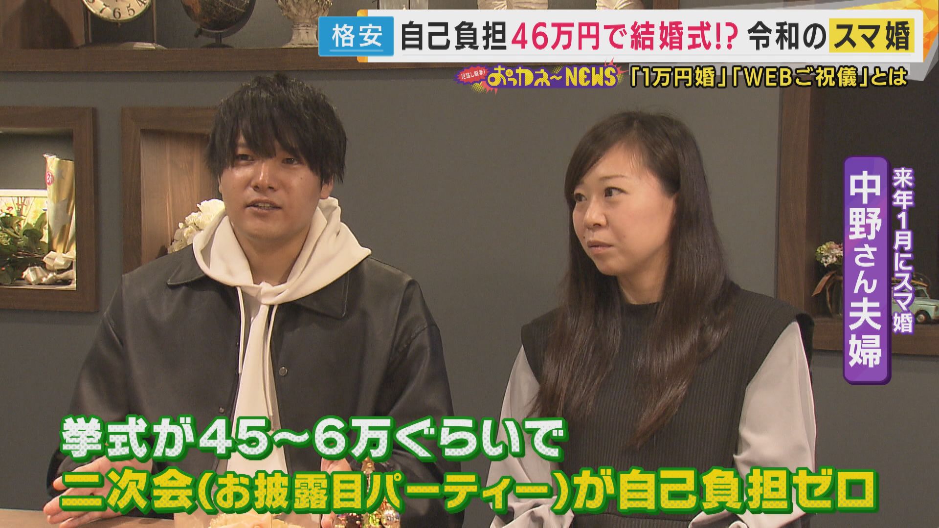 【来年1月にスマ婚 中野さん・妻】「こんだけ安くできるなら、今後、家買ったり、子供生まれたり、そっちに貯蓄回せたりするので」