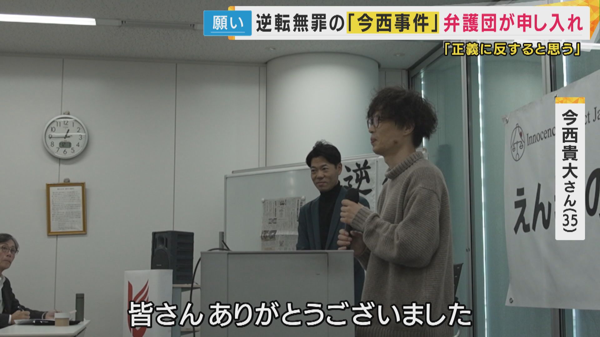 今西さんの弁護団は3日、大阪高等検察庁に対し上告をしないよう申し入れを行いました。