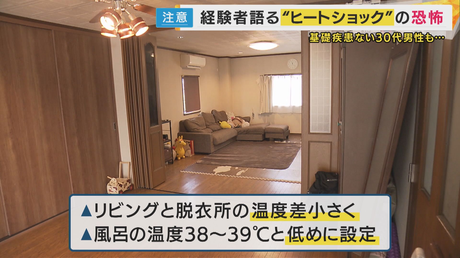 この経験以降、吉田さんは、リビングと脱衣所の温度差をできるだけ小さくしたり、風呂の温度を38度から39度と低めに設定したりするなど、予防を心掛けているということです。