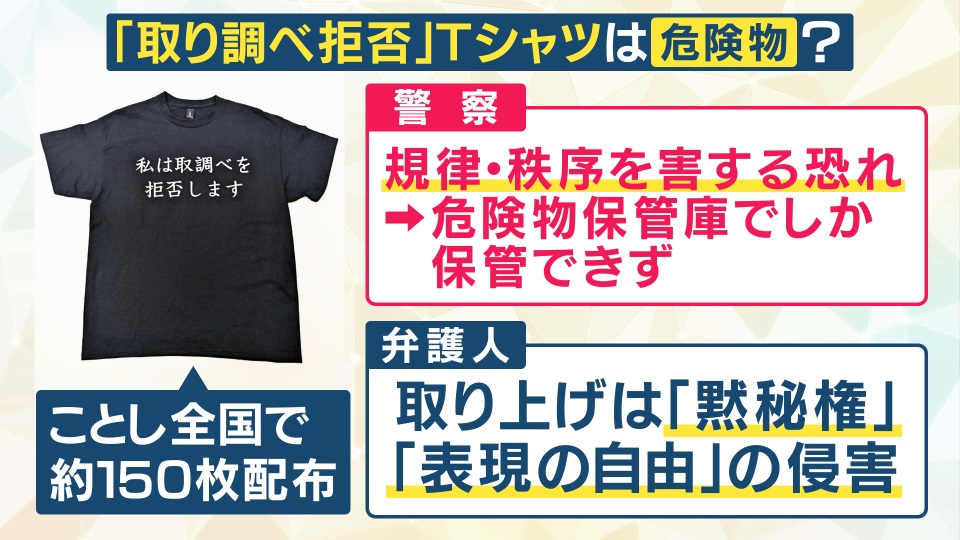 【独自取材】『取調べ拒否Tシャツ』留置場で警察が取り上げ 秩序のため措置必要か?黙秘権の侵害か?