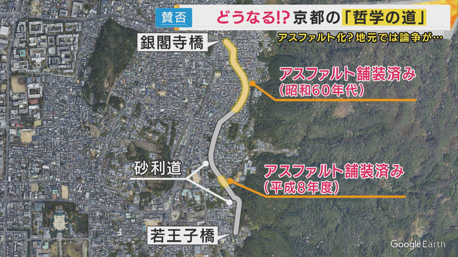『哲学の道』砂利道のアスファルト舗装に賛否「車いすやベビーカー通行できない」「環境破壊される」