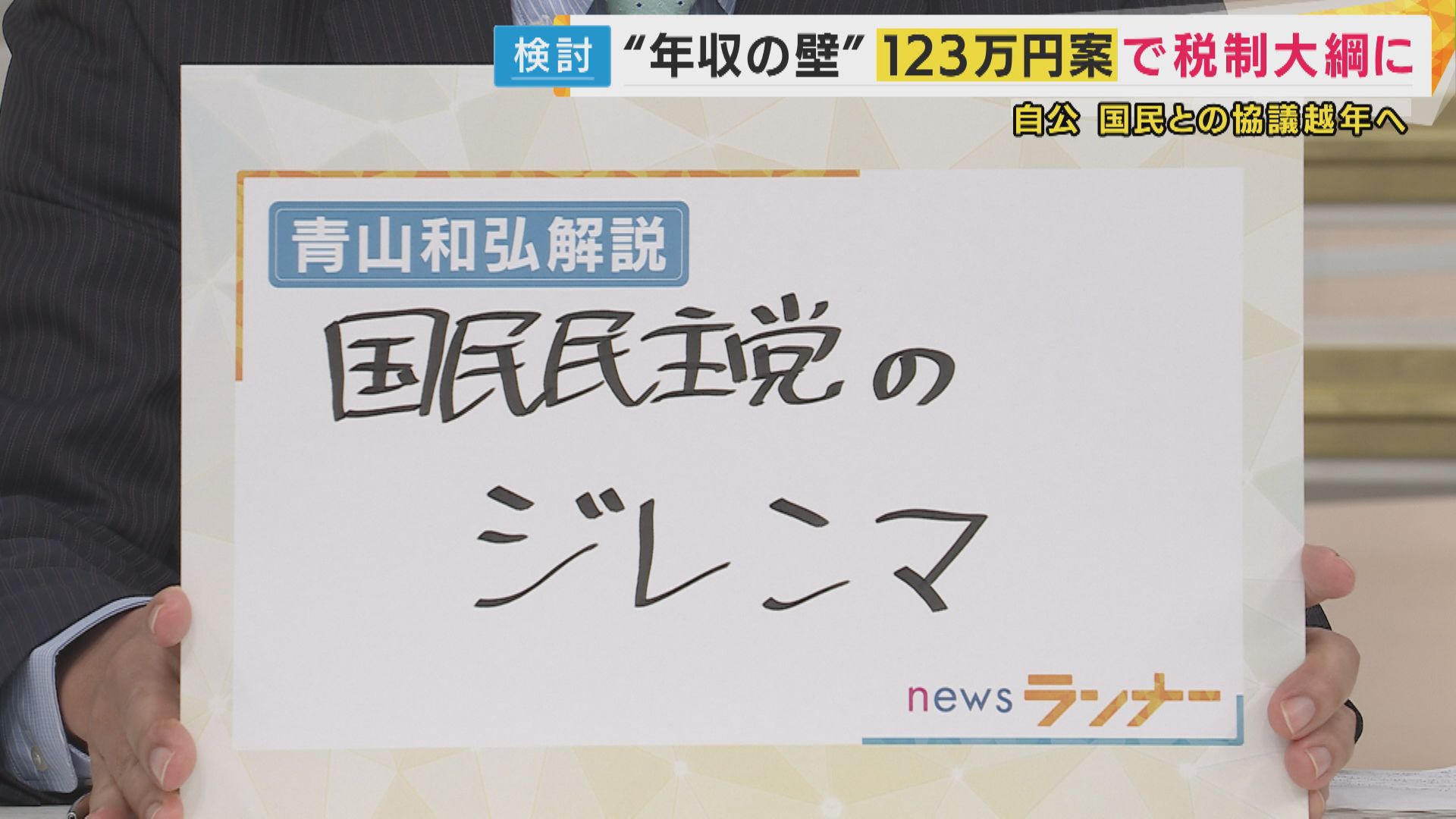 【政治ジャーナリスト・青山和弘氏】「本当に大きな開きがある中で、やっぱり国民民主党がどこまで譲るかという問題だと思うんですね。『国民民主党のジレンマ』というのが、今浮き彫りになってると思うんです。やはり世論は、178万円にあげることをかなり後押ししている状況です。国民民主党も主張してきたので譲りたくない」