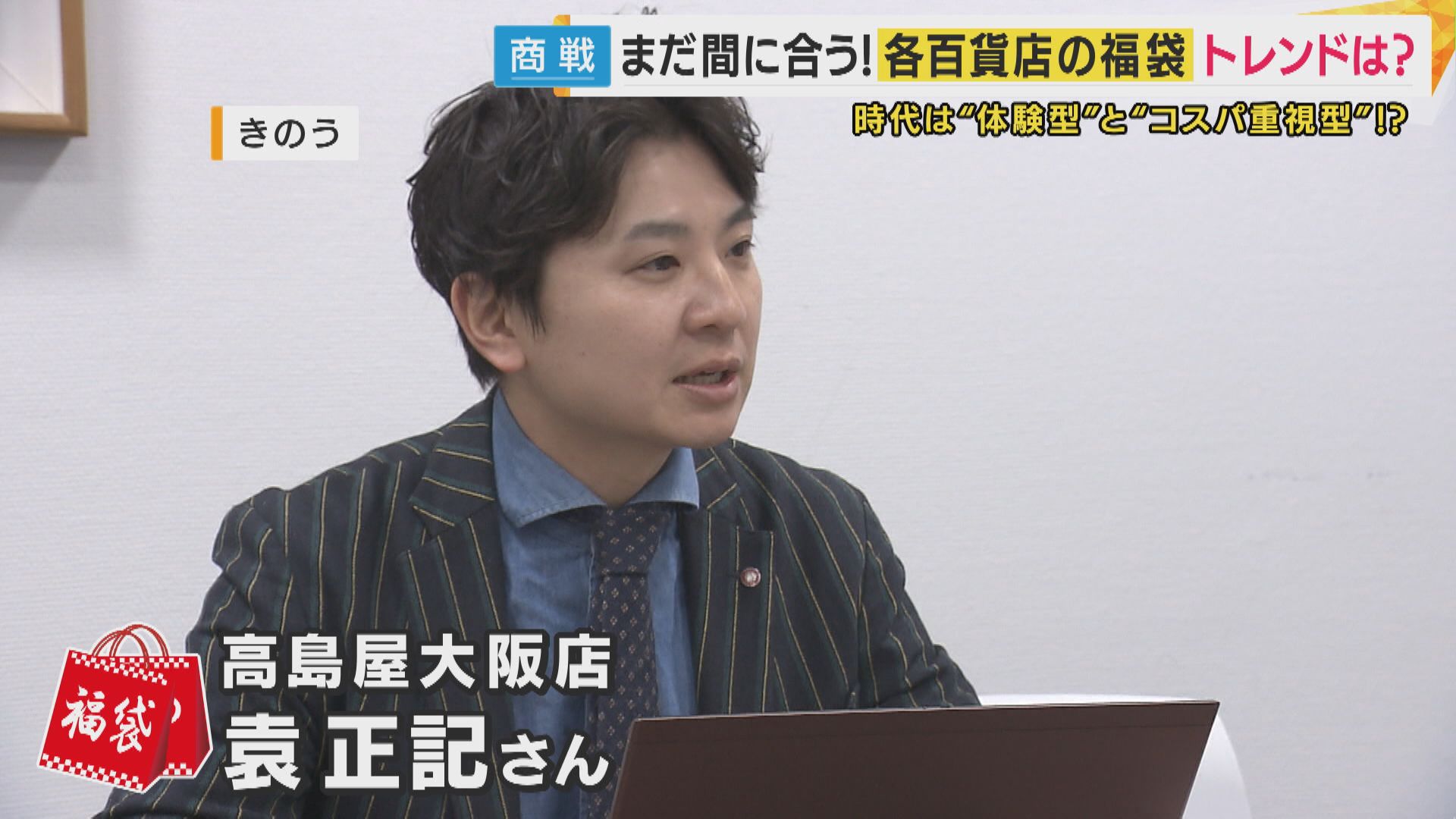 【高島屋大阪店 福袋担当 袁正記さん】「福袋の中身が分からないであったり、サイズが異なるということから、年々そういった(従来の福袋の)需要は減ってきています。 数えきれないほどの『体験型福袋』があるので、そこのところは他の百貨店には負けないかなと思う」