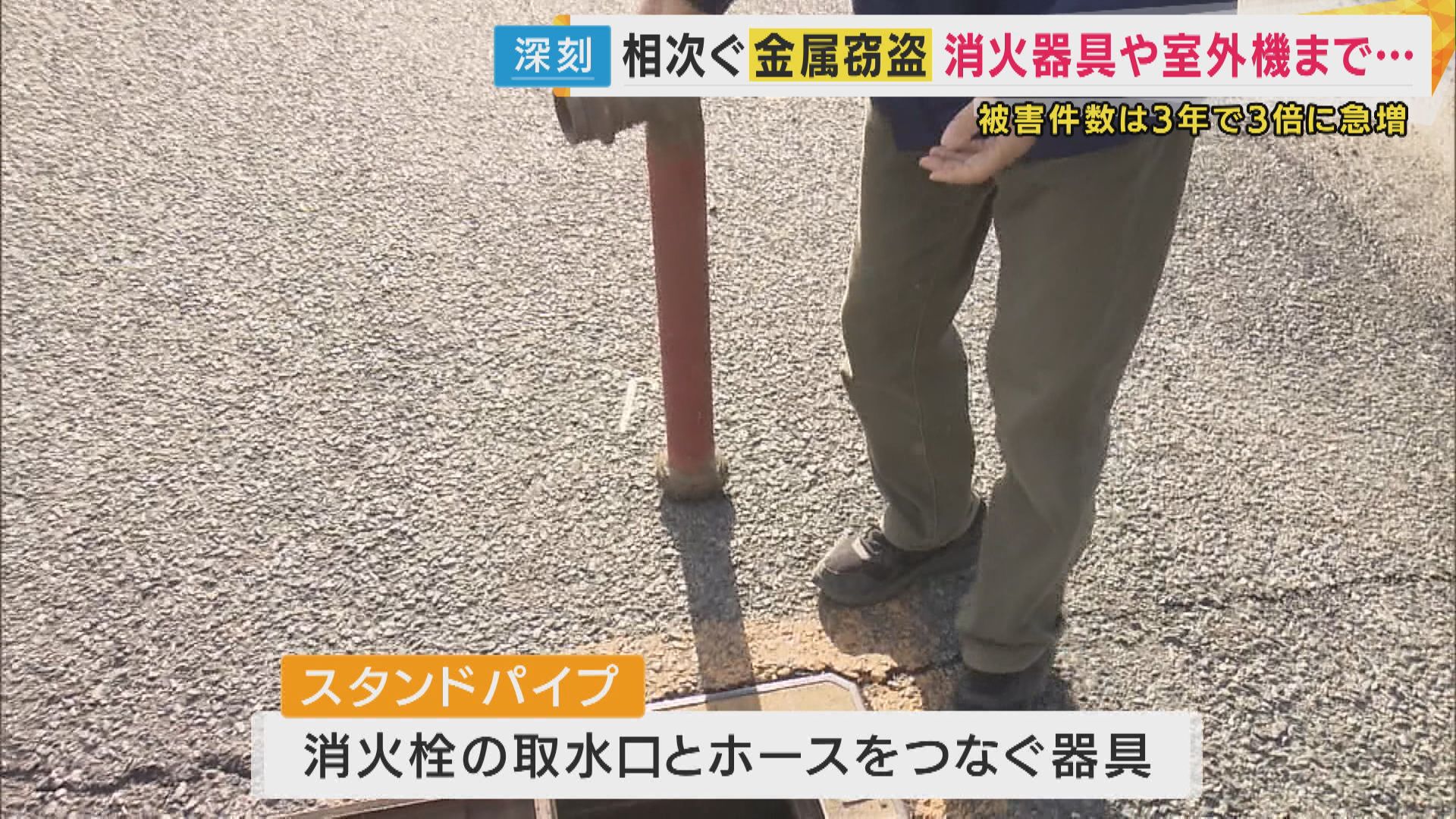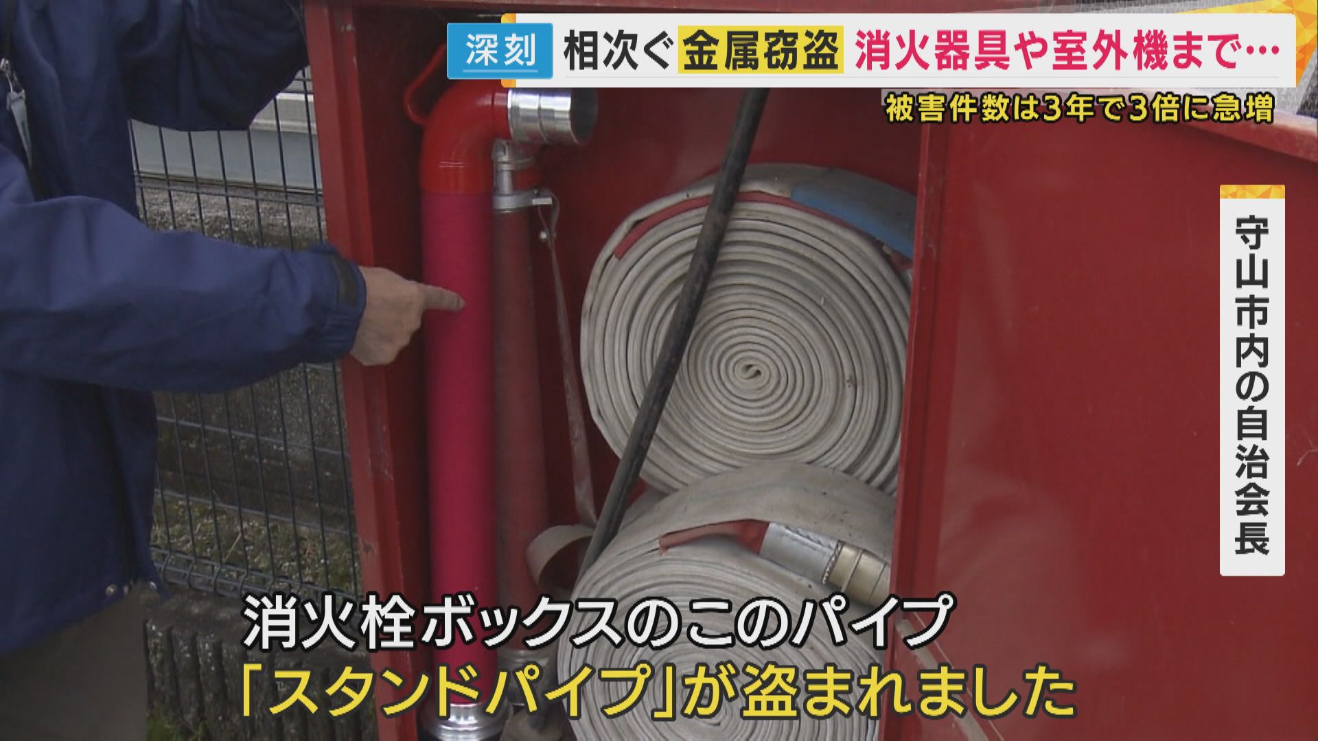 【守山市内の自治会長】「消火栓ボックスのこのパイプ、スタンドパイプが盗まれました。まさかです」