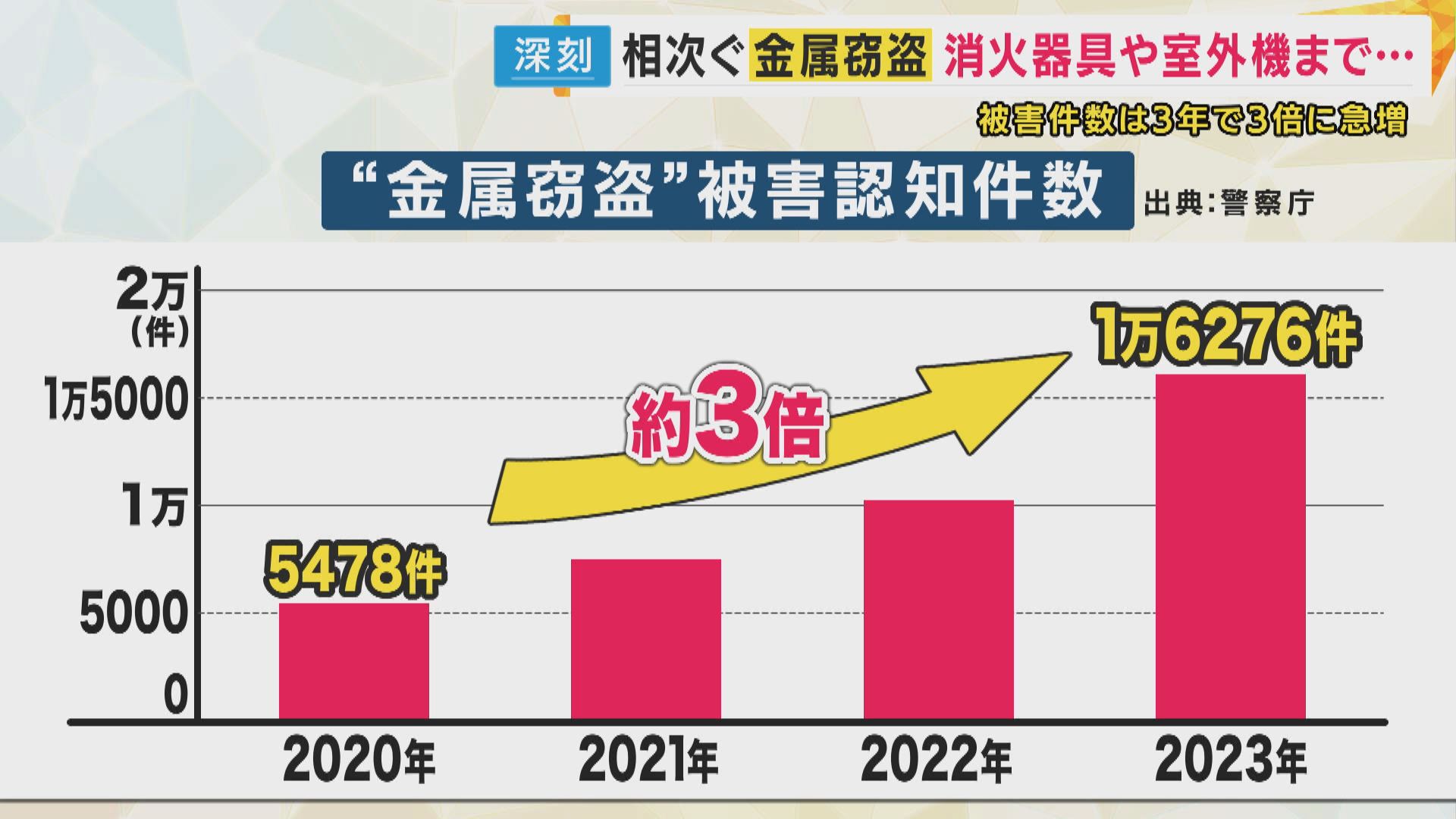 全国での金属窃盗の被害は2020年にはおよそ5500件でしたが、去年には1万6000件以上と、3年で3倍となっています。 その背景には、銅などの金属の価格高騰があるとみられますが、違法に盗んだものをなぜ売ることができるのでしょうか。
