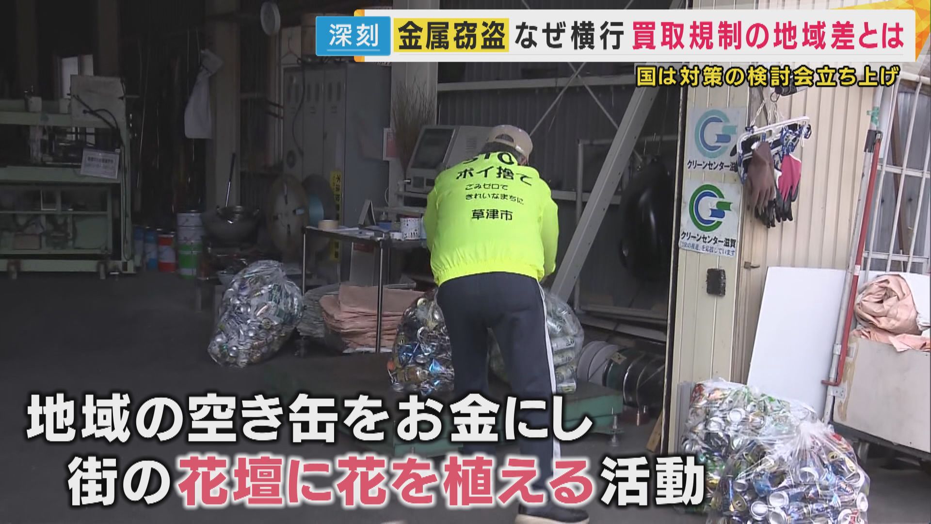 滋賀県内の金属買い取り業者を取材。 24日、やってきたのは3袋分の空き缶を集めた人です。