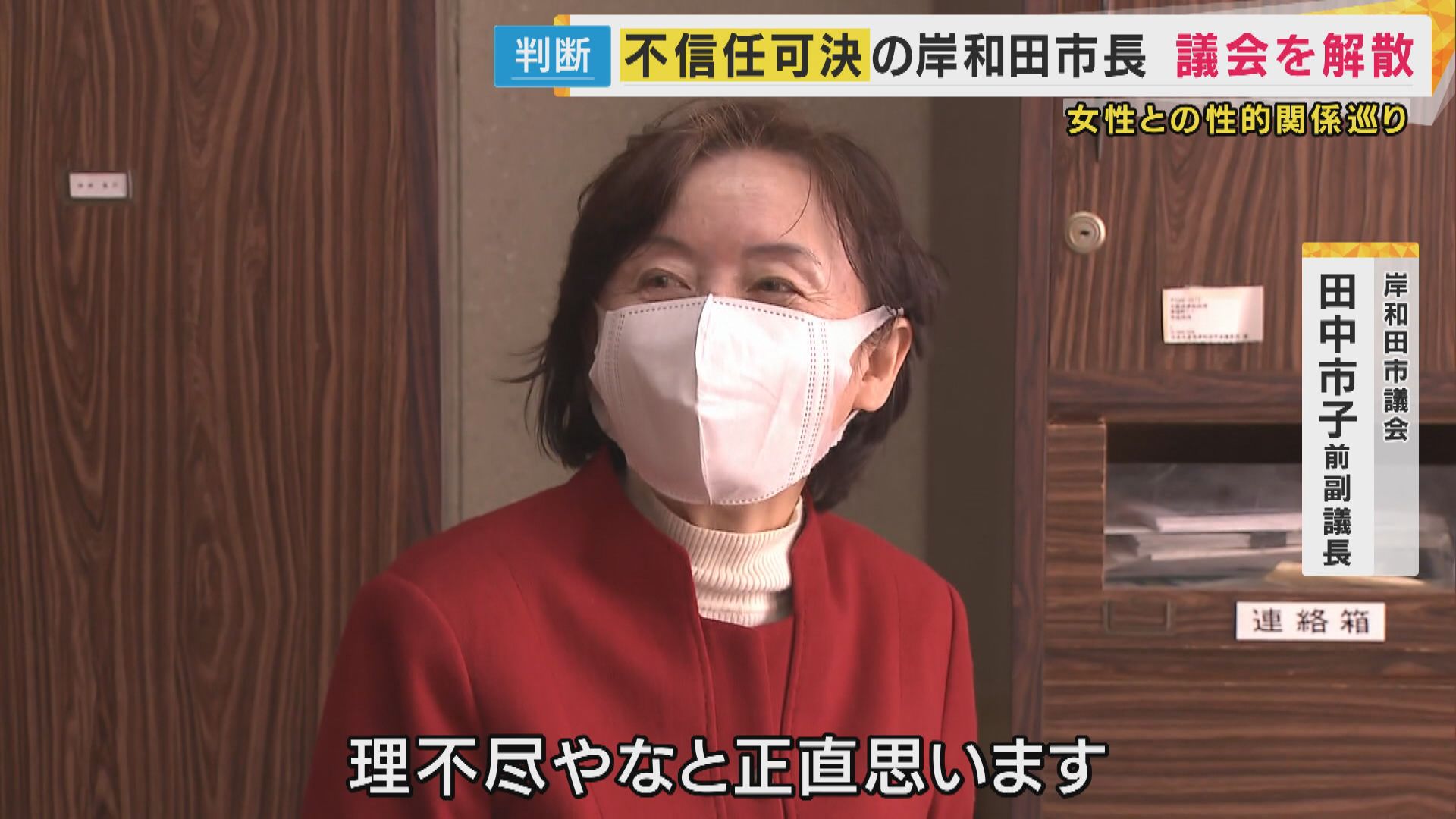 【岸和田市議会 田中市子前副議長】「私たち議員ではなく、なにものでもない人間なので、ここからきれいに出ていかないといけない。理不尽やなと、正直思います…」
