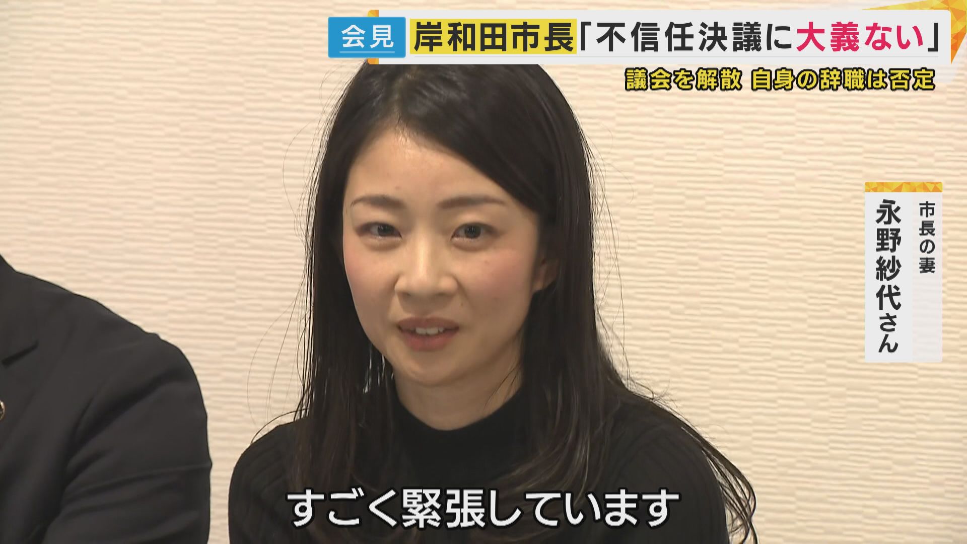 【市長の妻 永野紗代さん】「すごく緊張しています。事実ではないこともたくさん出回っているので、事実を伝えたいと思い、ここに来ました」