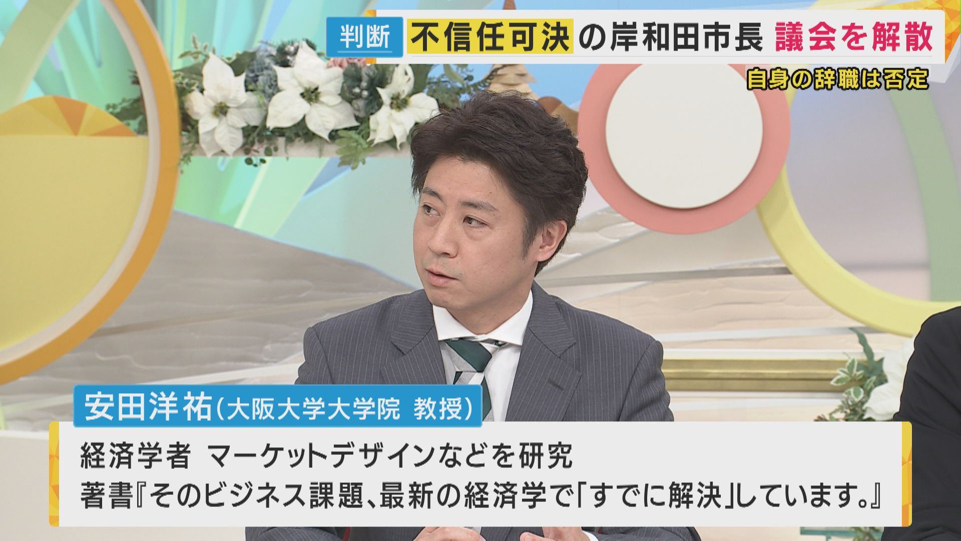 岸和田市長は議会解散の道を選びましたが、この判断について番組コメンテーターの安田洋祐教授は「大義はないのではないか」と話します。