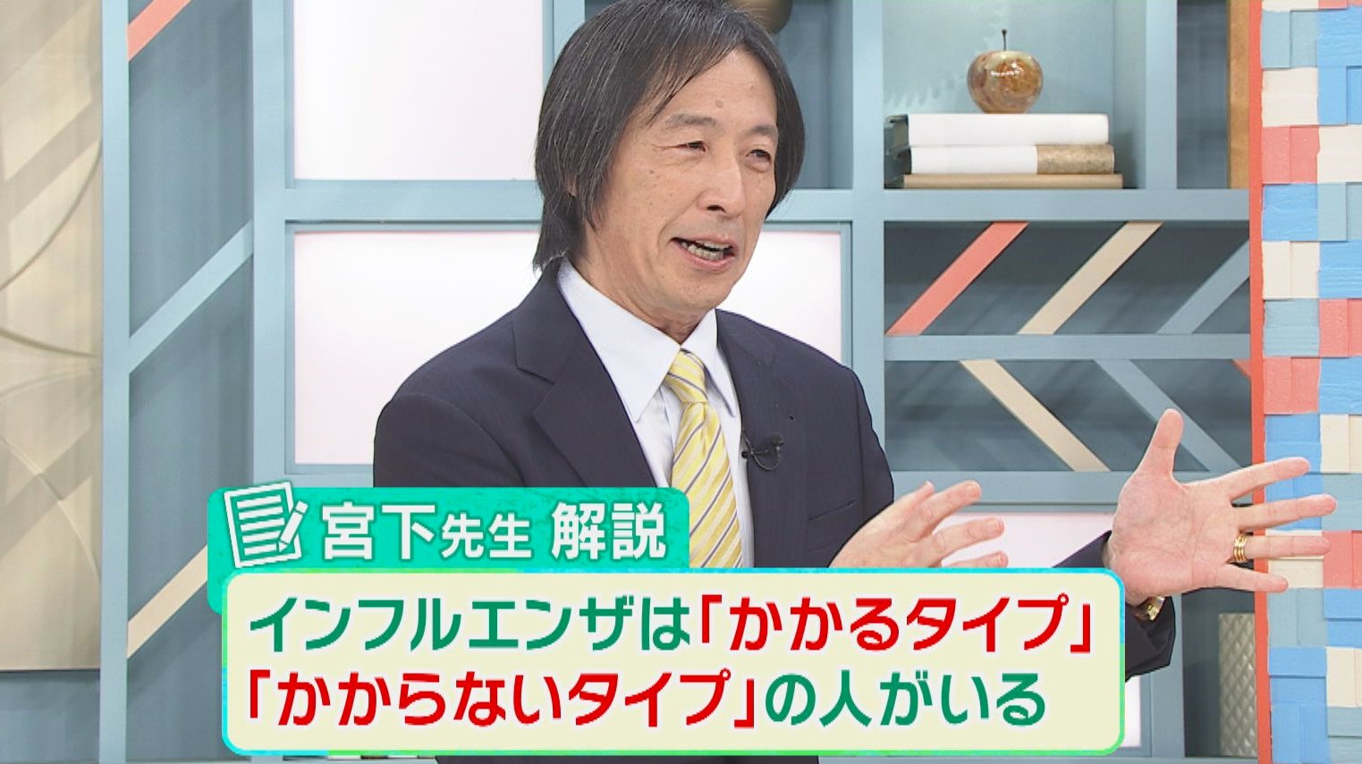 「インフルエンザの重要なポイントは、かかりやすい人とかかりにくい人がいます。私(宮下医師)はかかりにくいタイプです。かかりやすい人は、一度かかった時にまだ次のタイプにもかかりやすい、ということを覚えておいていただきたいです」