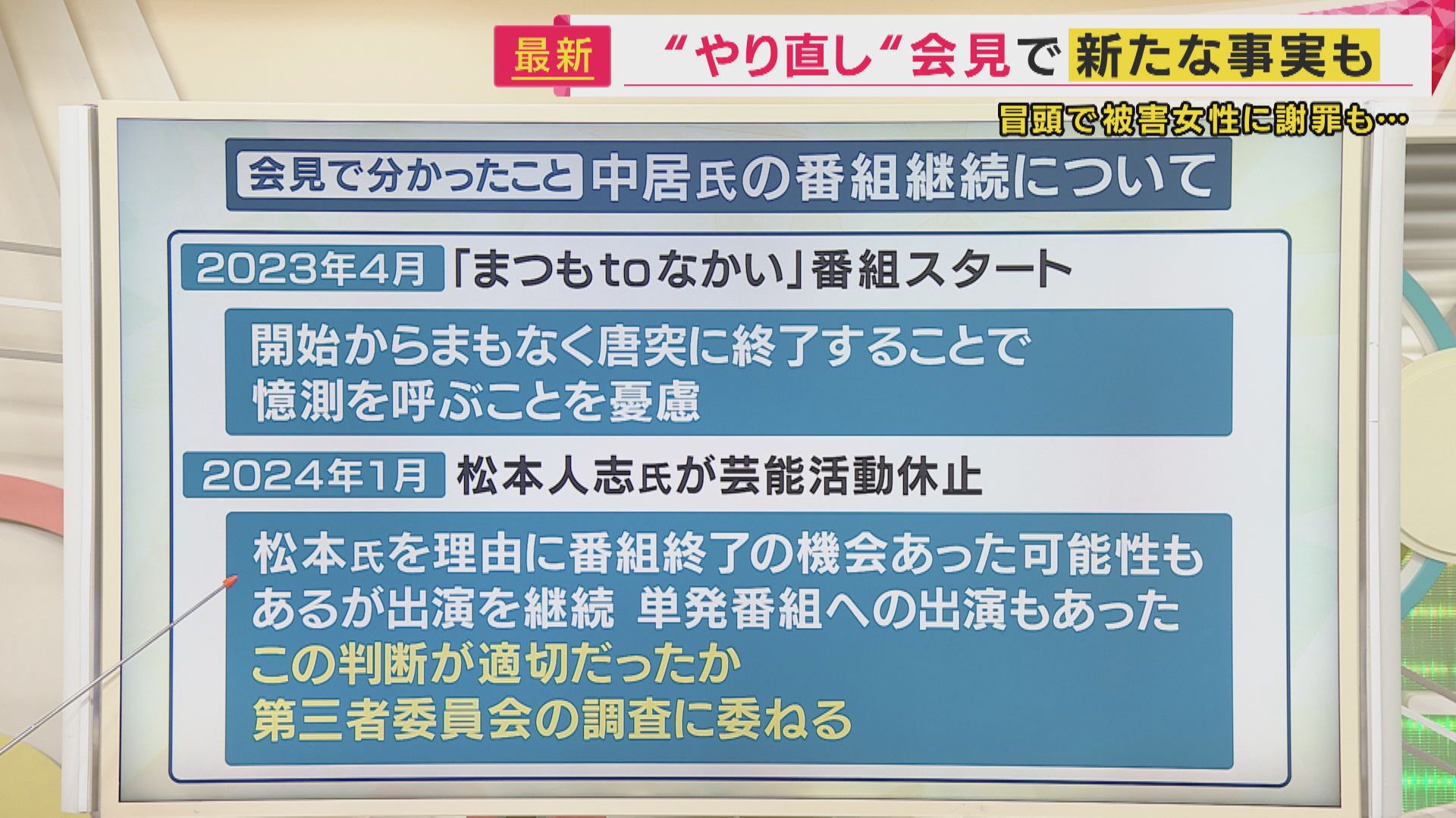 このタイミングで、松本氏を理由に番組終了の機会があった可能性もあるが、出演を継続。中居氏は単発番組への出演あった。この判断が適切だったか、第三者委員会の調査に委ねるということです。