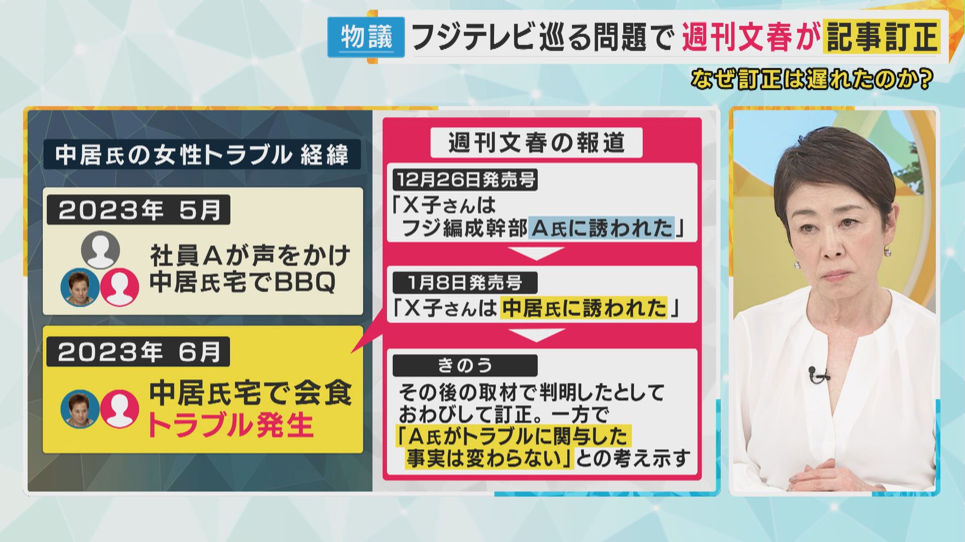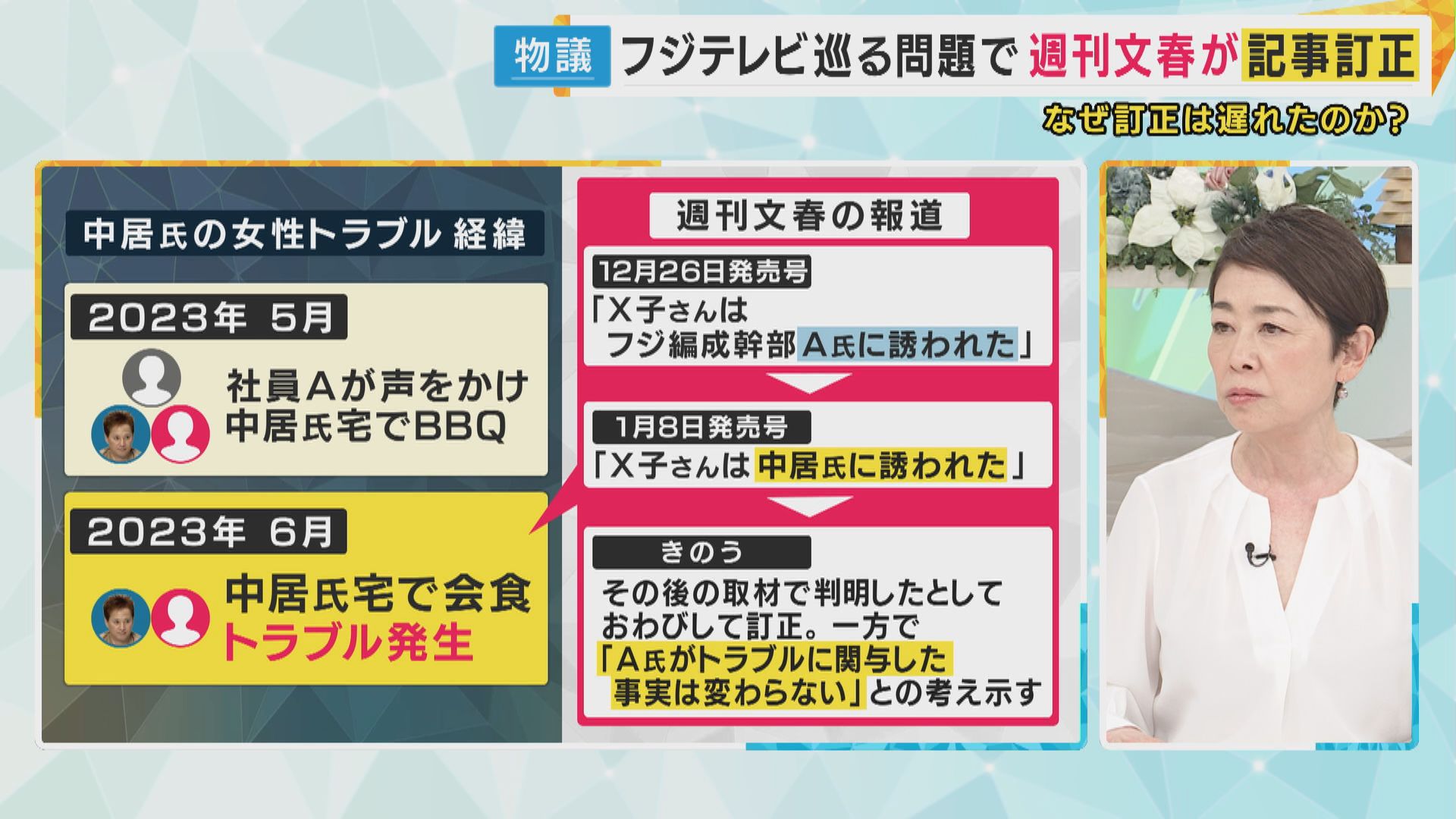 「トラブルは被害女性と中居氏の間に起こったもので、編成幹部A氏がその場をセッティングや、誘った張本人じゃないことになれば、『関与した』と言えるんでしょうか。このような部分も訂正するべきなのではないかなと思いました」