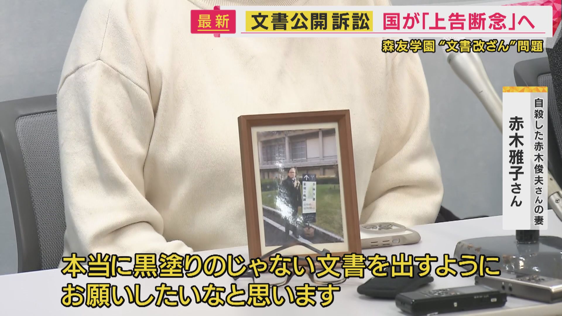 【自殺した赤木俊夫さんの妻・赤木雅子さん】「本当に黒塗りのじゃない文書を出すように、お願いしたいなと思います。1日でも早く出して欲しいです。夫に関わること、夫がどれだ(改ざんに)反対したのか記録があれば見たい」