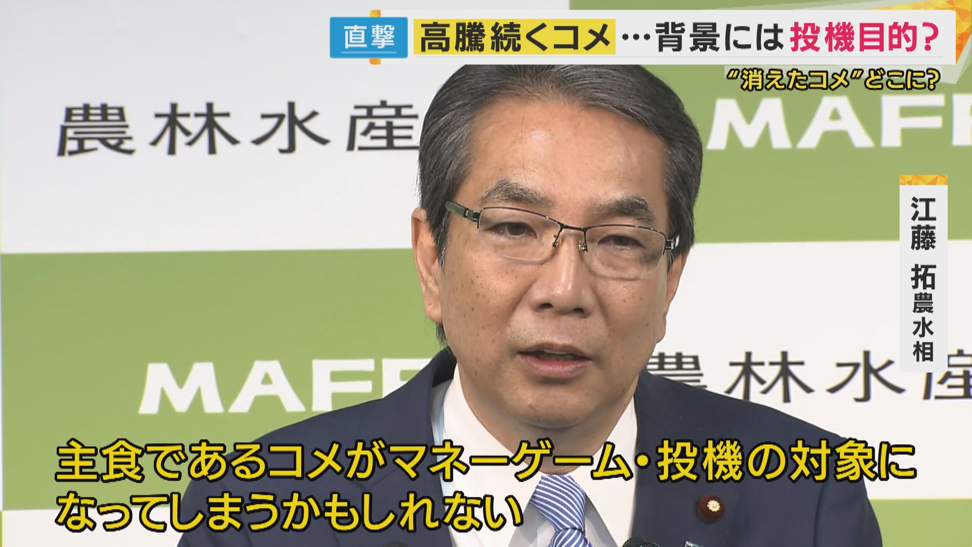 【江藤拓農水相】「このままの状態を放置すれば、これから先も主食であるコメが、マネーゲーム・投機の対象になってしまうかもしれない」