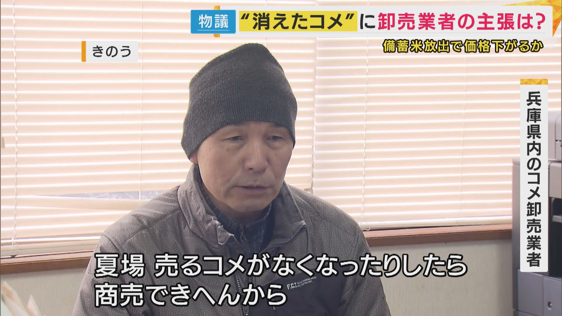 【兵庫県内のコメ卸売業者】「一気に出すことはしないと思う。去年みたいな(コメがなくなる)ことになったらえらいことやから」