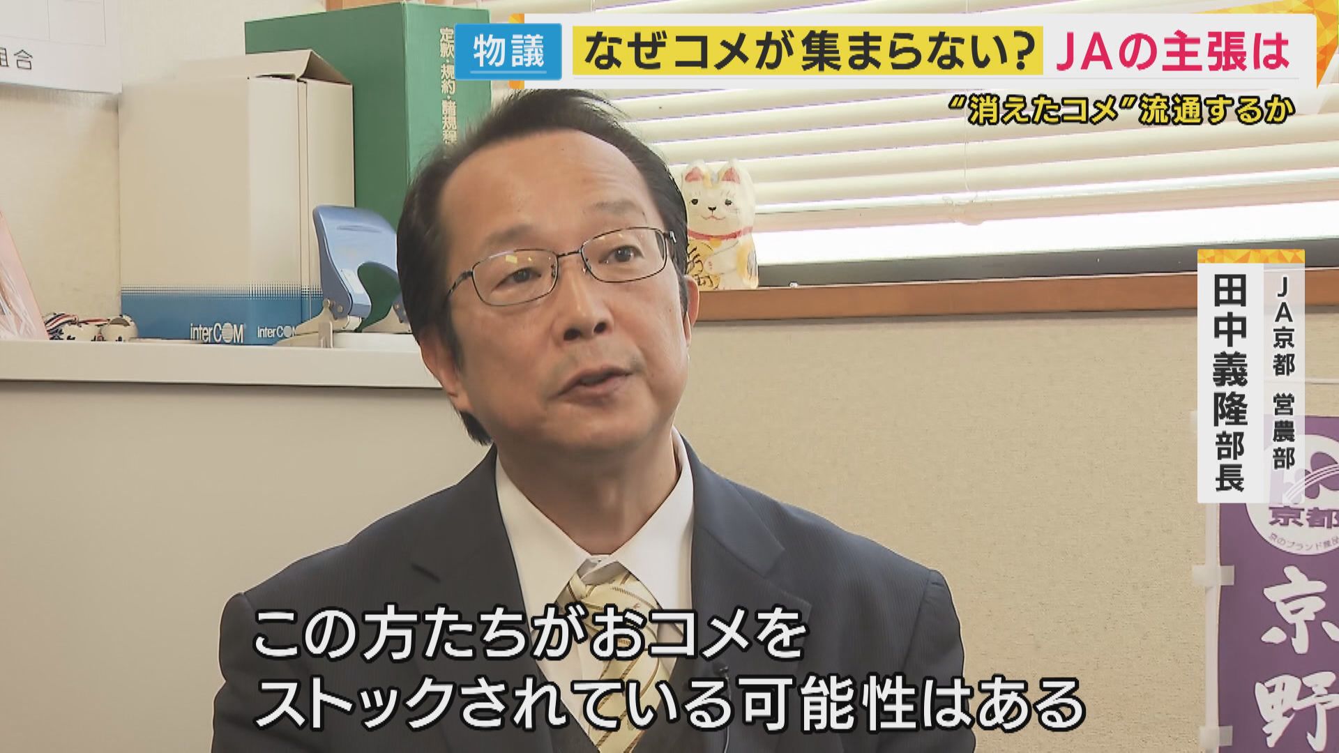 【JA京都 田中義隆営業部長】「JA以外の中間業者さん、ブローカーさん。この方たちがコメをストックされている可能性はある」