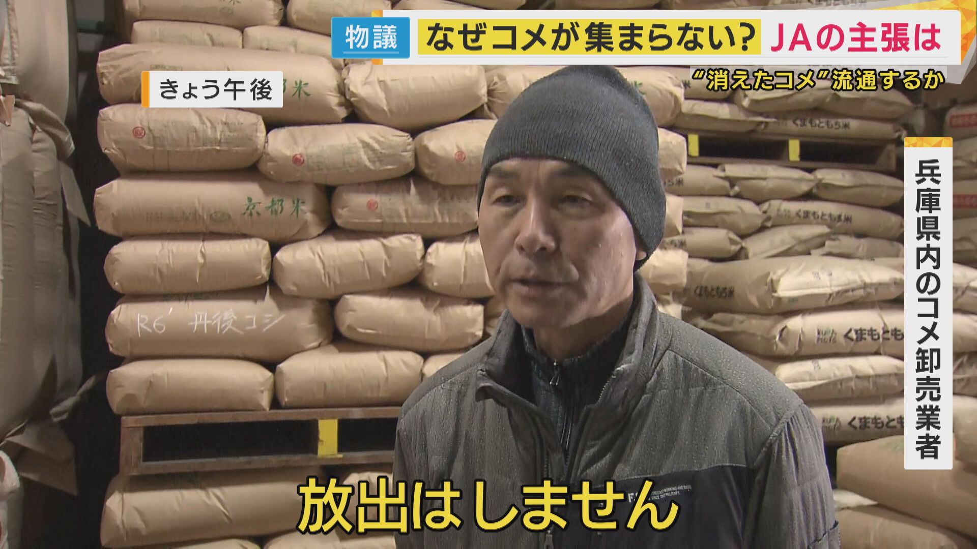 【兵庫県内の米卸売業者】「放出はしません。新米がとれるまでの、従来からの得意先用のコメですので、それを切らすことは絶対できない。そのためのストックです」