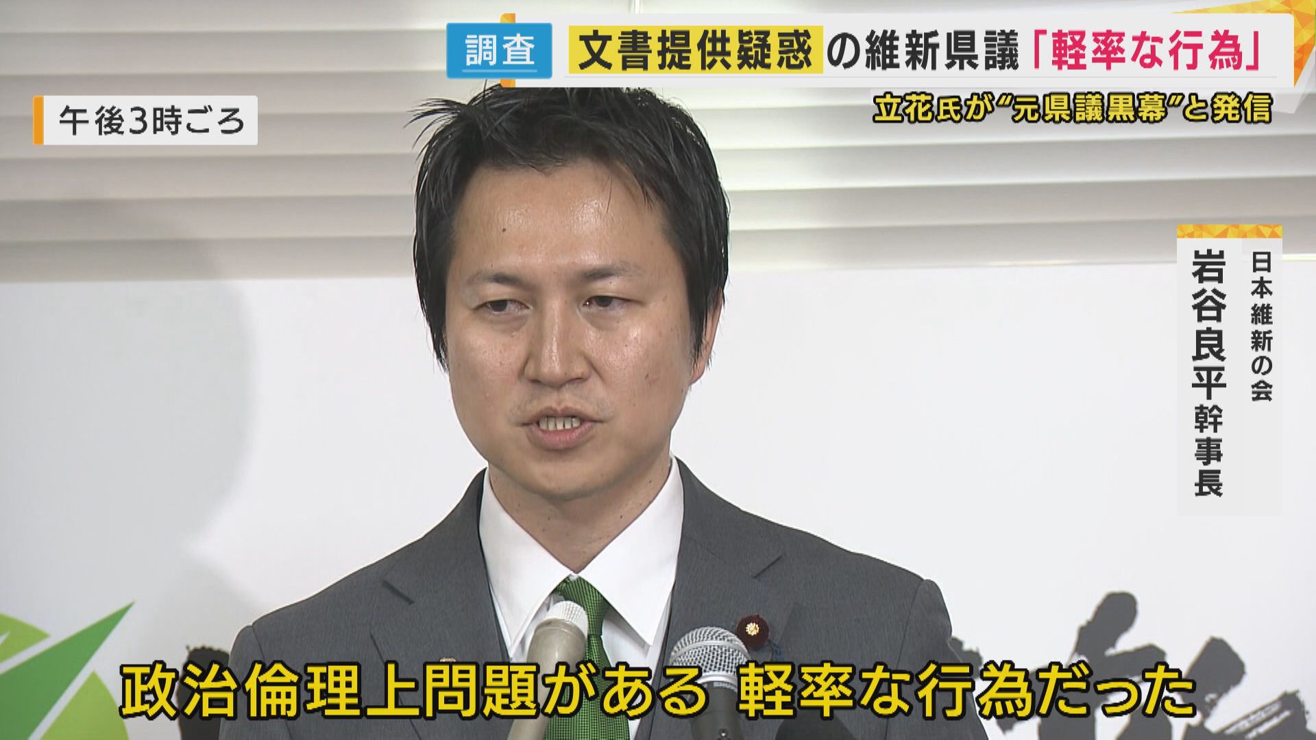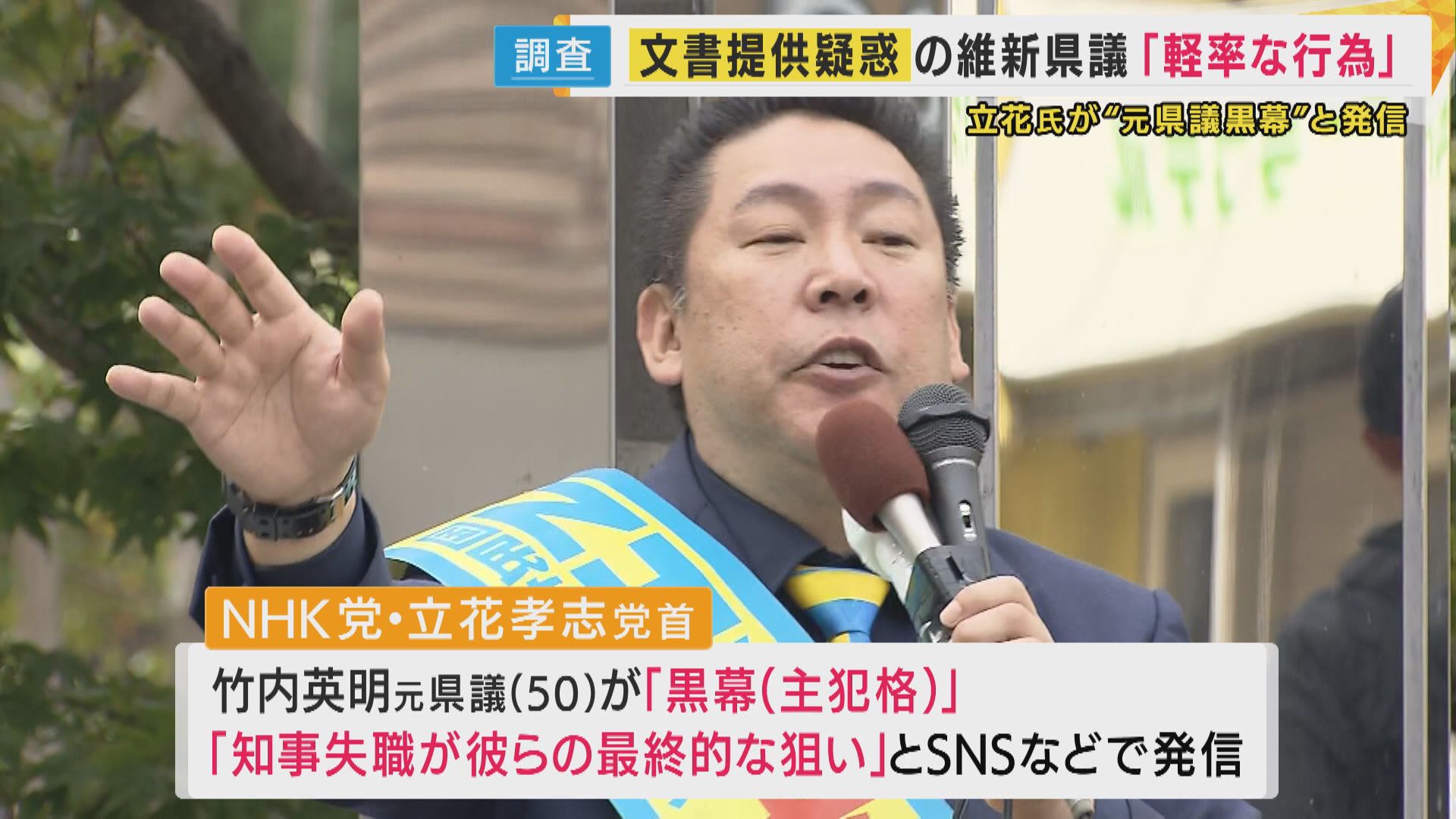立花氏に文書提供疑惑の維新県議 立花氏は死亡した元県議を「黒幕」など発信 維新が調査内容の一部発表