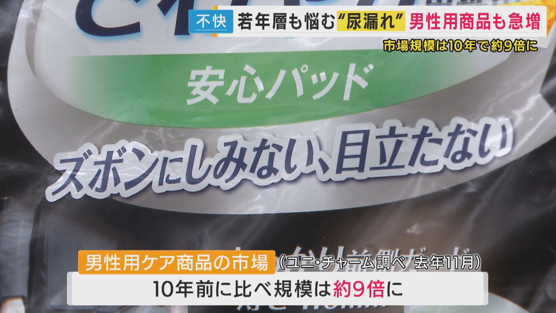 【ユニ・チャーム株式会社 Love Your Possibilities広報部 伊藤元彦さん】「男性でも年代によりますけど5人に1人が月に1回尿漏れの症状に悩んでいる。実は結構ティッシュで対処してしまっている人ですとか、或いは女性用の生理用品を使って対処している人というのが、我々の調査の中でどんどん浮き彫りになってきた」