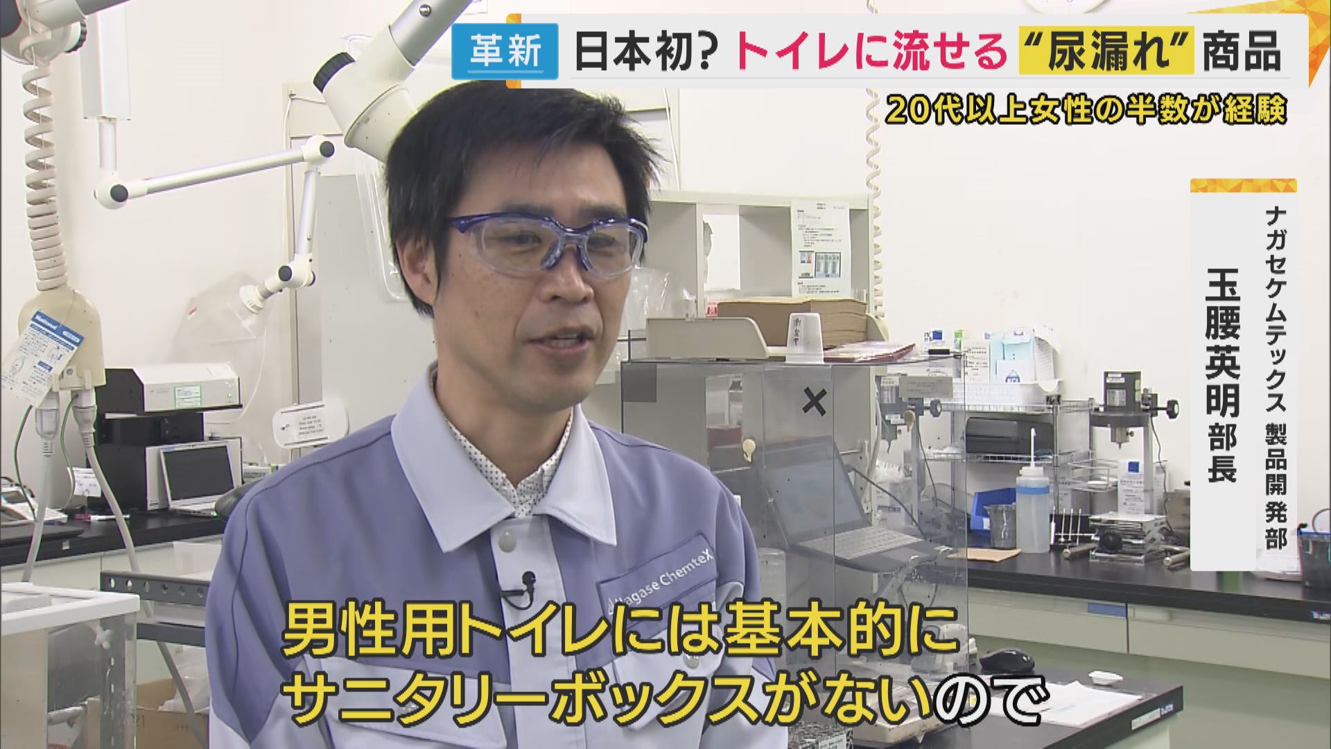 【ナガセケムテックス製品開発部 玉腰英明部長】「男性用トイレには基本的にサニタリーボックスがありませんので、外出先で使用した際、持ち帰らなければいけないという課題がありましたので、それに対応できるというのも一つのポイントだと考えています」