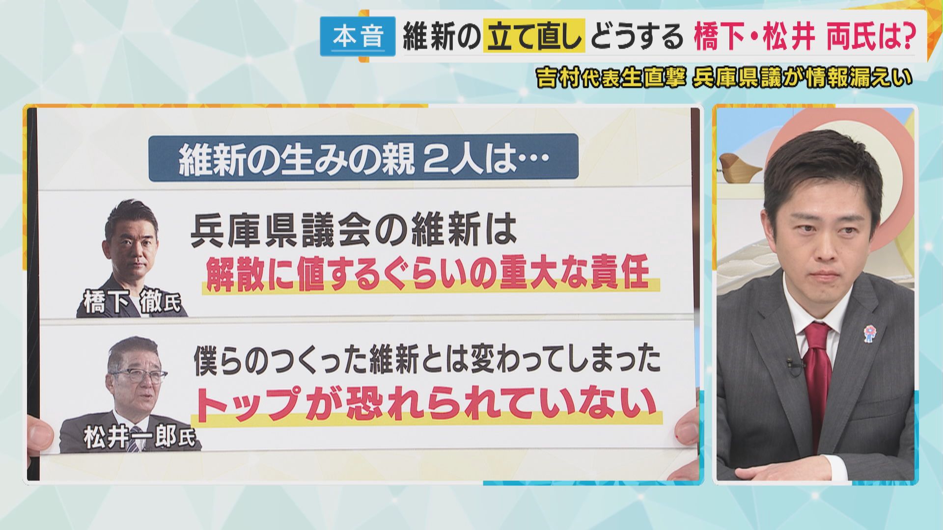 ただ、維新の生みの親、橋下さんは『兵庫県議会の維新は解散に値するぐらいの重大な責任』、松井さんは『僕らの作った維新と変わってしまった。トップが恐れられていない』という厳しい指摘でしたが、どう思いますか?