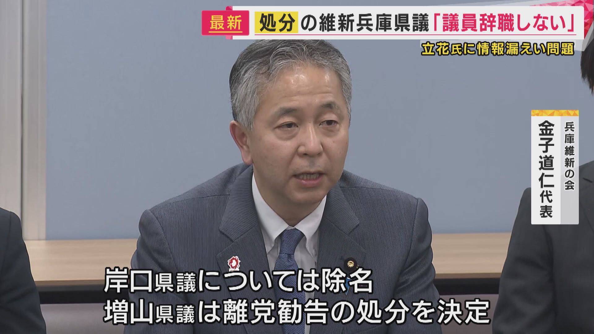 【兵庫維新の会 金子道仁代表】「岸口県議については除名、増山県議は離党勧告の処分を決定しました」