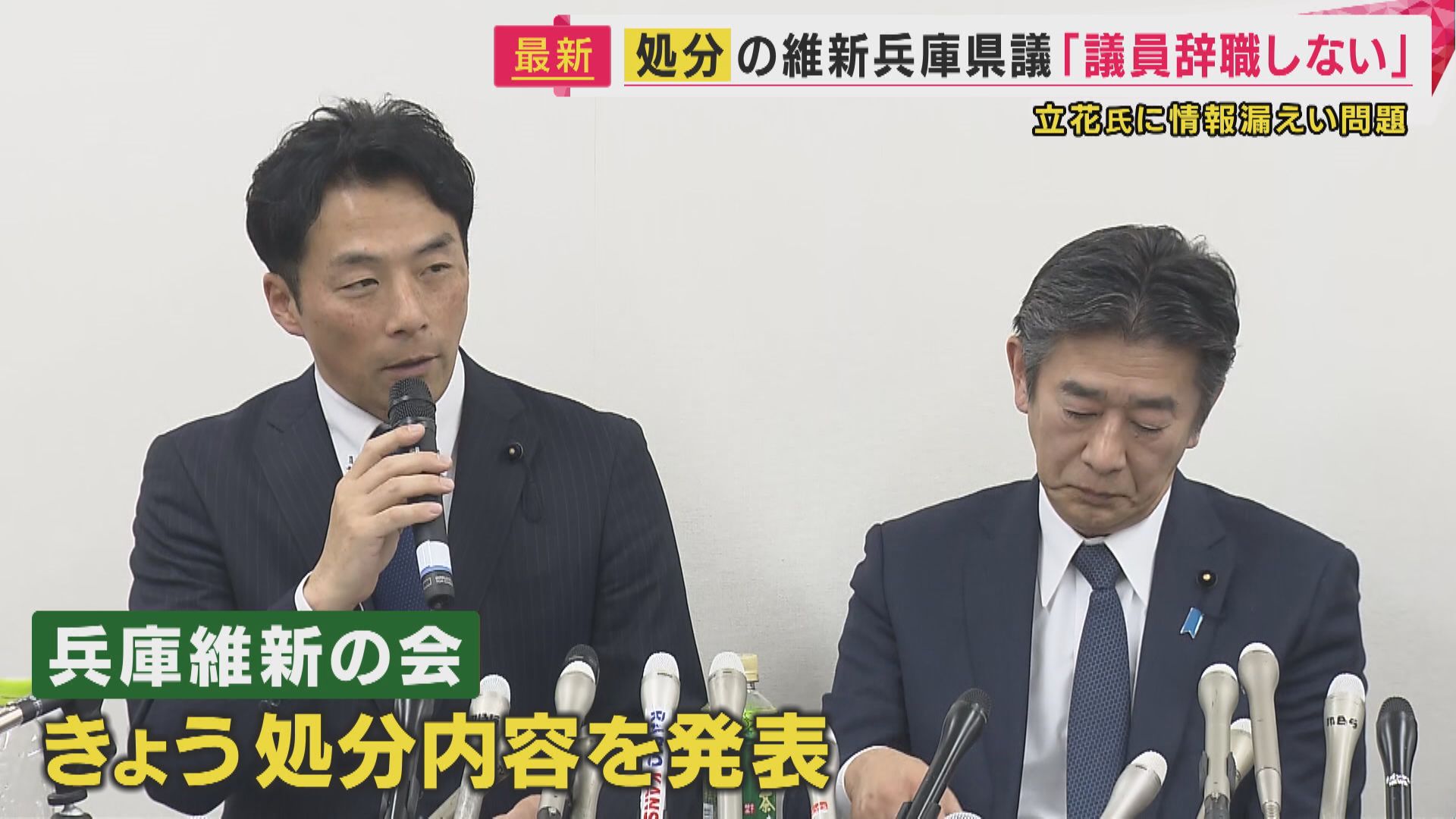 兵庫維新の会は2人への聞き取りなどを行い、26日、処分内容を発表。
