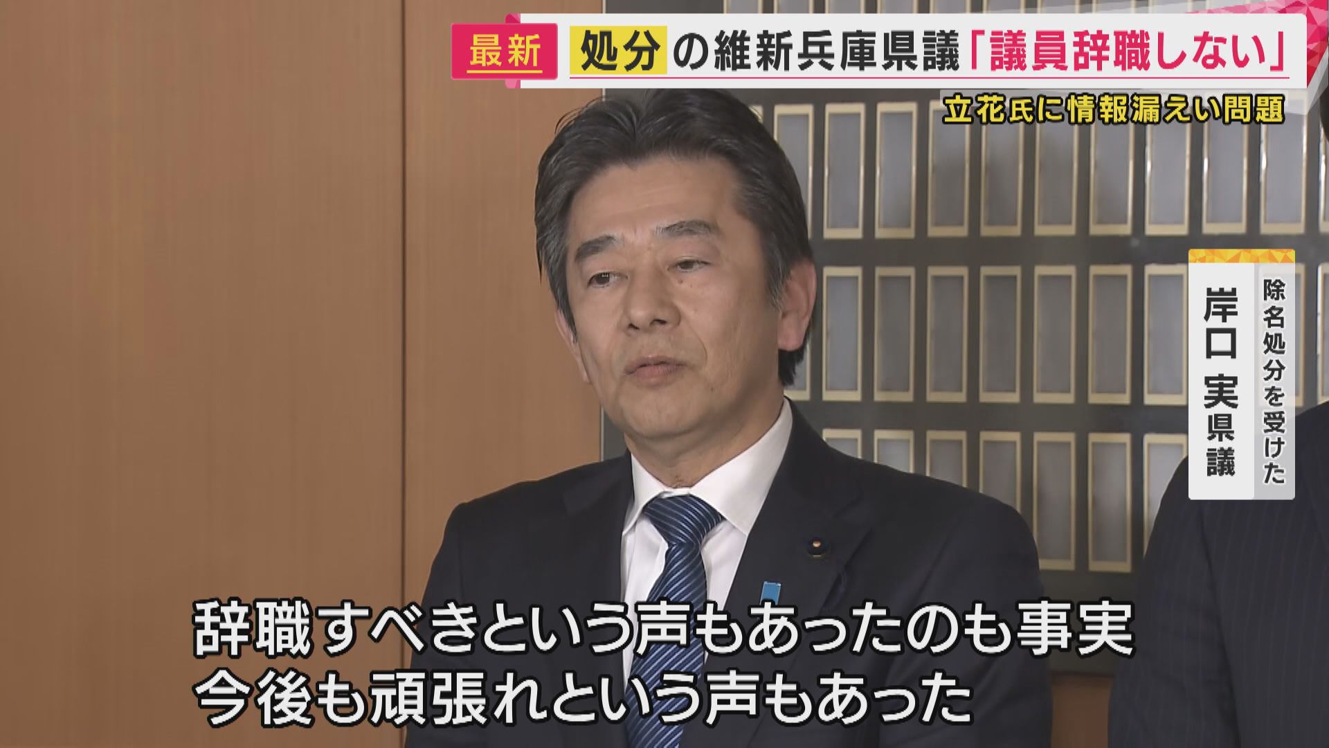 岸口議員については、百条委員会の副委員長かつ、県議団の団長(当時)として情報の漏えいを防ぐ立場だったことなどから一番重い「除名」の処分を下しました。
