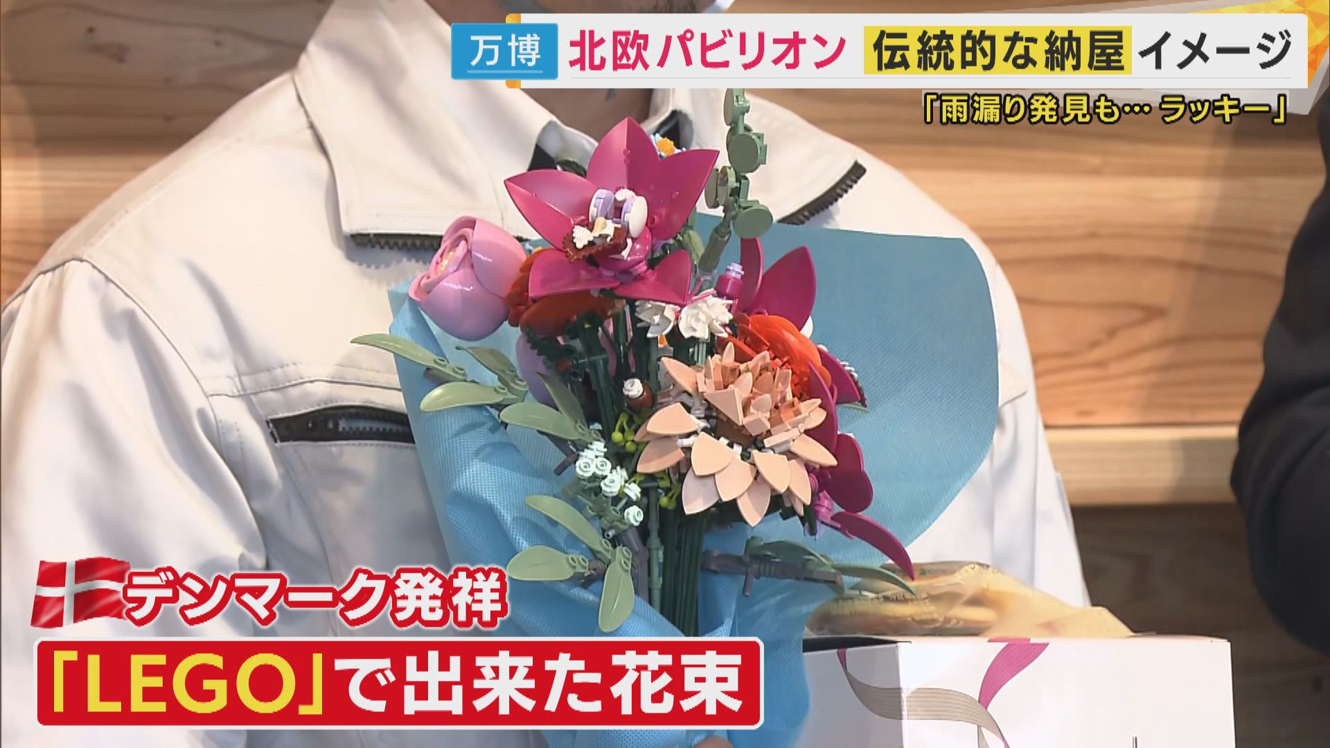 建物の完成を祝って、建設作業員にデンマーク発祥の「レゴ」で出来た花束が渡されました。