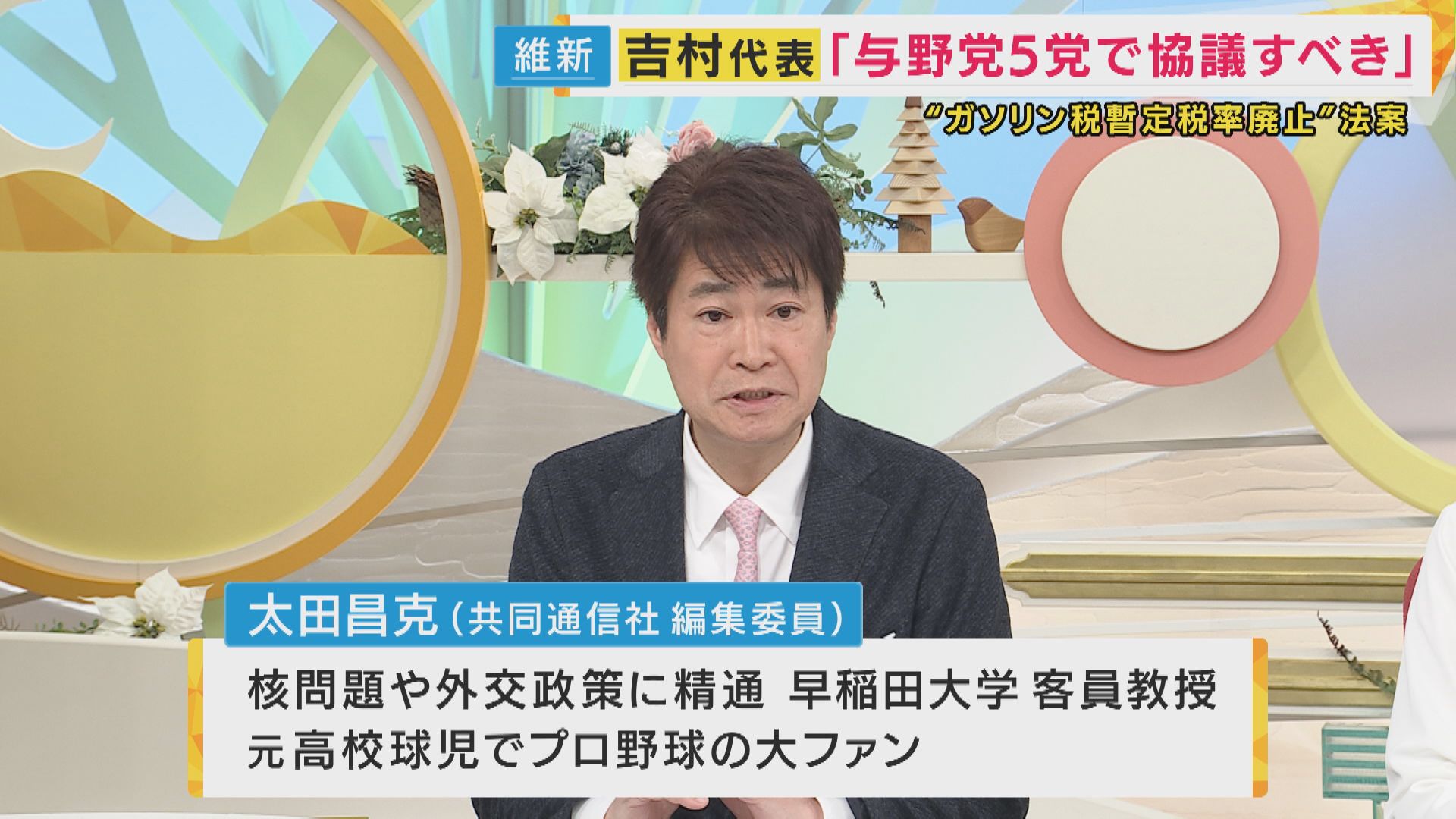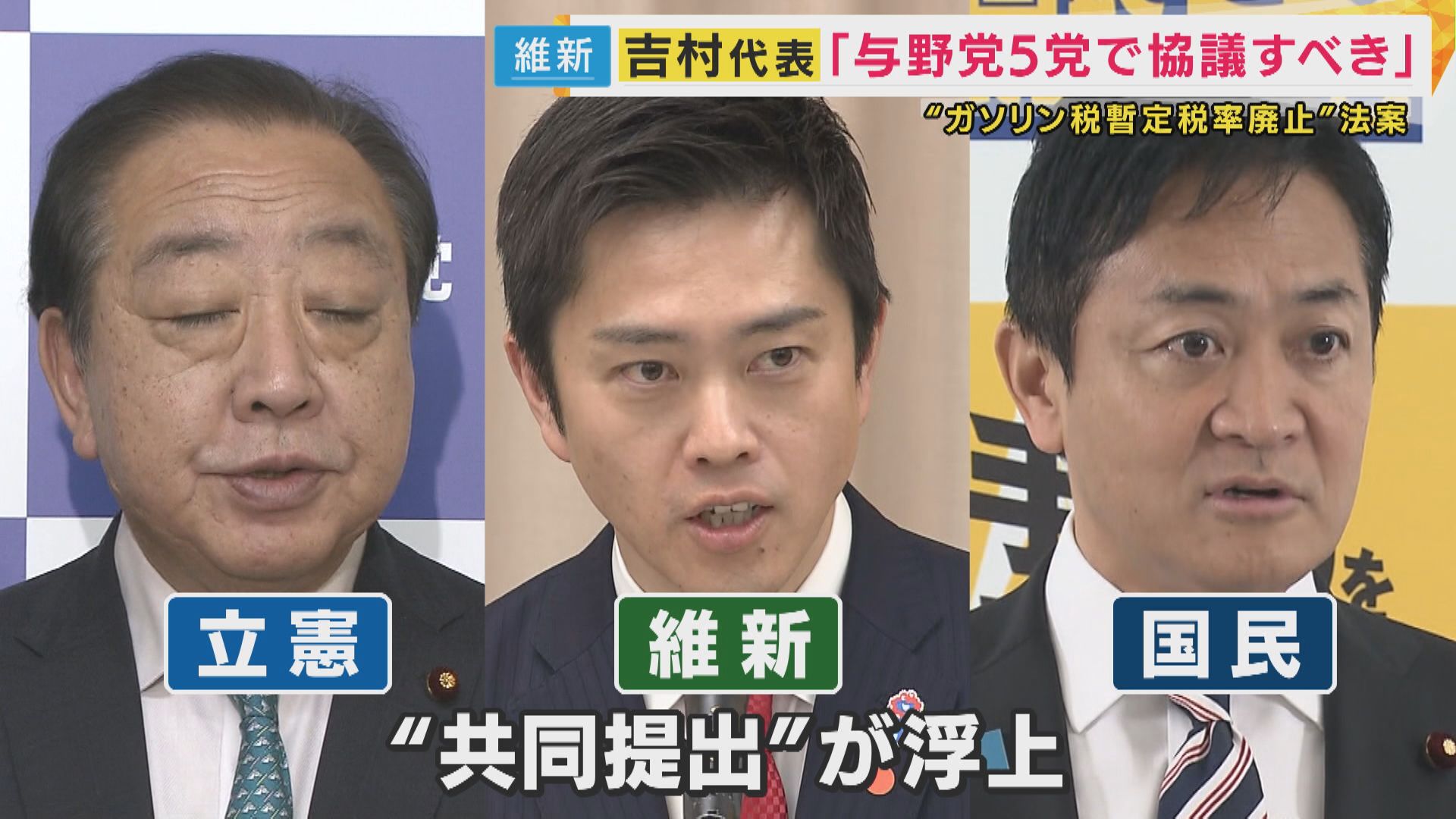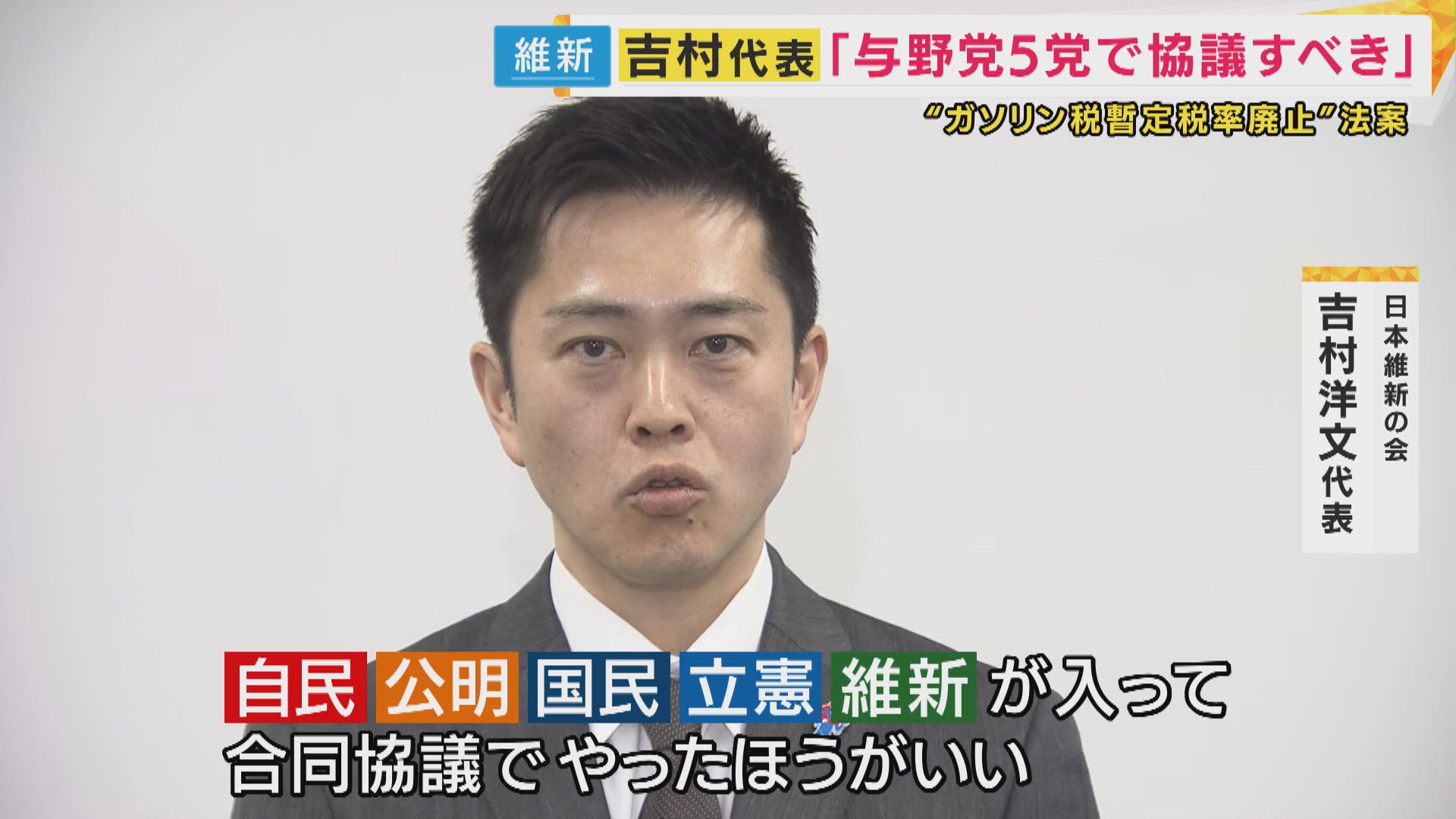 維新・吉村氏「実現は政府与党と協議必要」“ガソリン税暫定税率廃止”法案 維新「立・国と共同提出せず」
