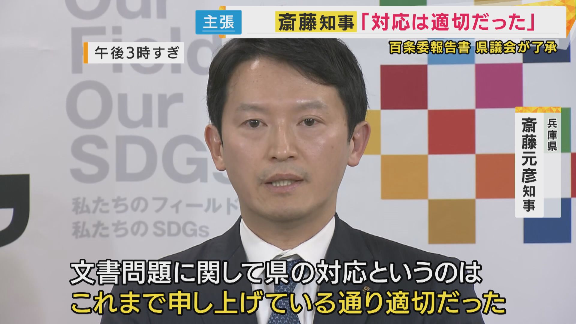 斎藤知事 告発に関して「対応は適切」認識変えず 『百条委報告書』告発者探しなど「違法の可能性」指摘も