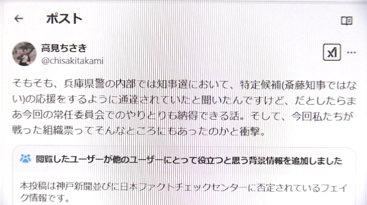 兵庫県知事選巡り「県警内部で特定候補応援を通達」とSNS投稿 姫路市議に政倫審「辞職勧告が相当」