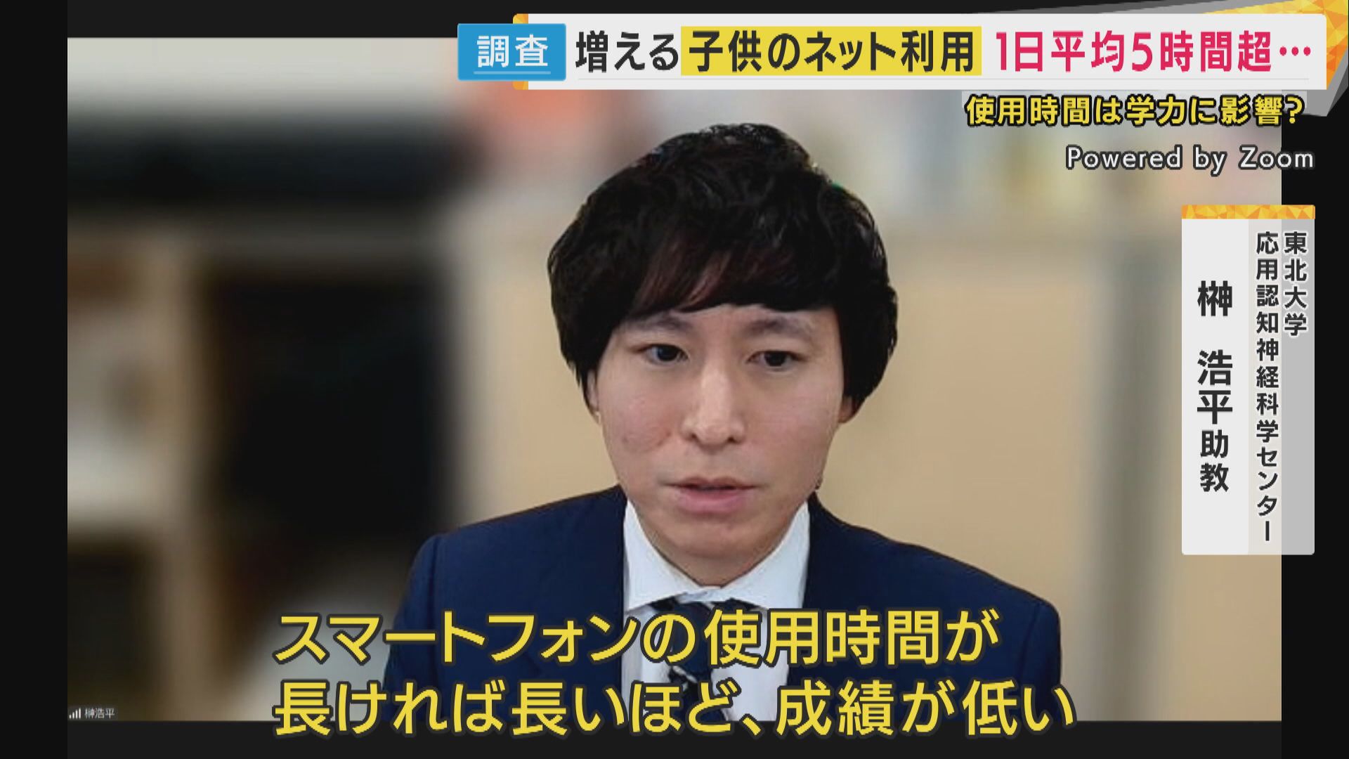 【東北大学応用認知神経科学センター 榊浩平助教】「同じ時間勉強していて、同じ時間寝ていた子でも、スマートフォンの使用時間が長ければ長いほど、成績が低い。