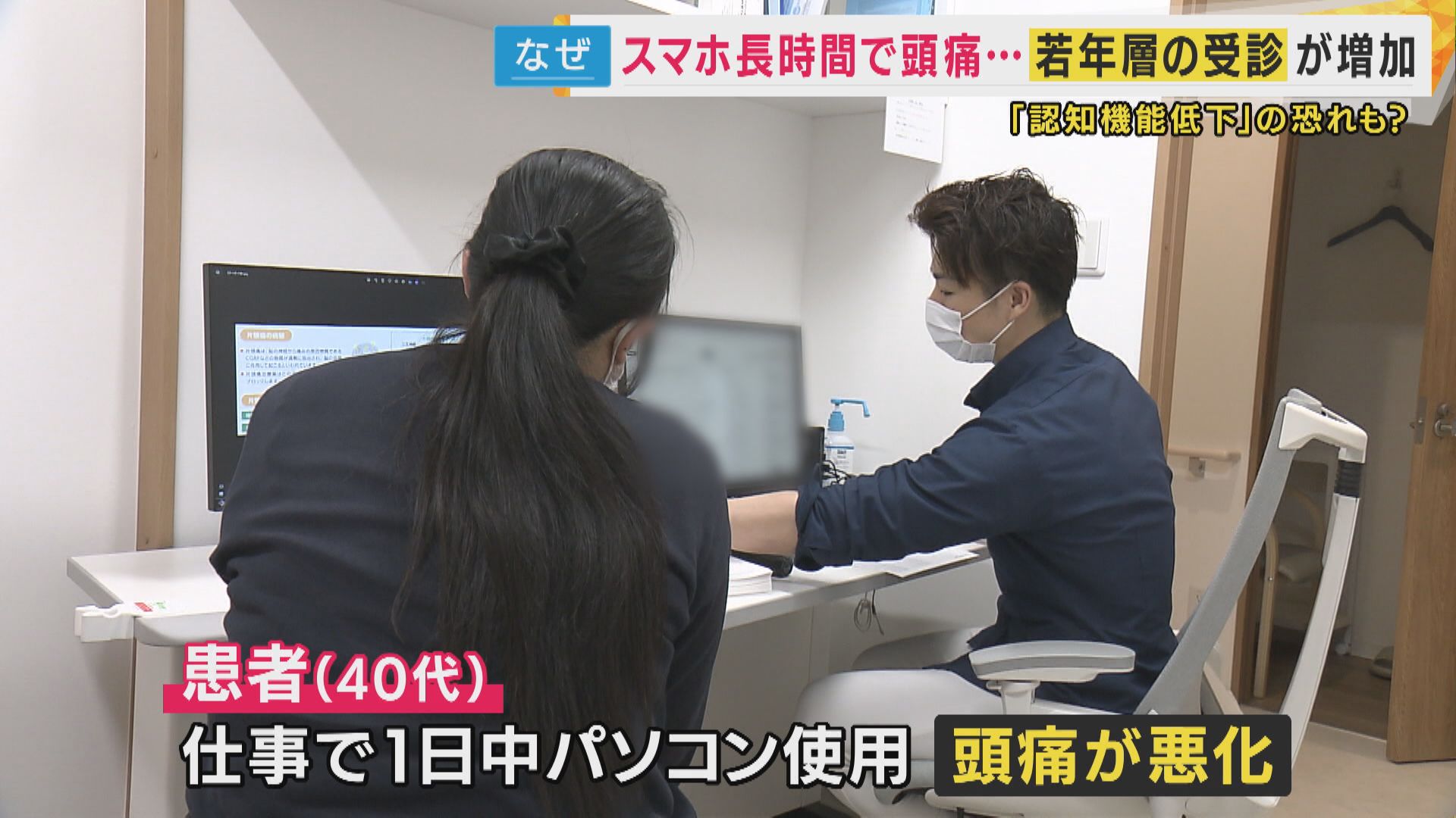 この日、訪れたのは40代の女性。仕事で1日中パソコンを触るうちに、頭痛が悪化し、この病院に通い始めました。