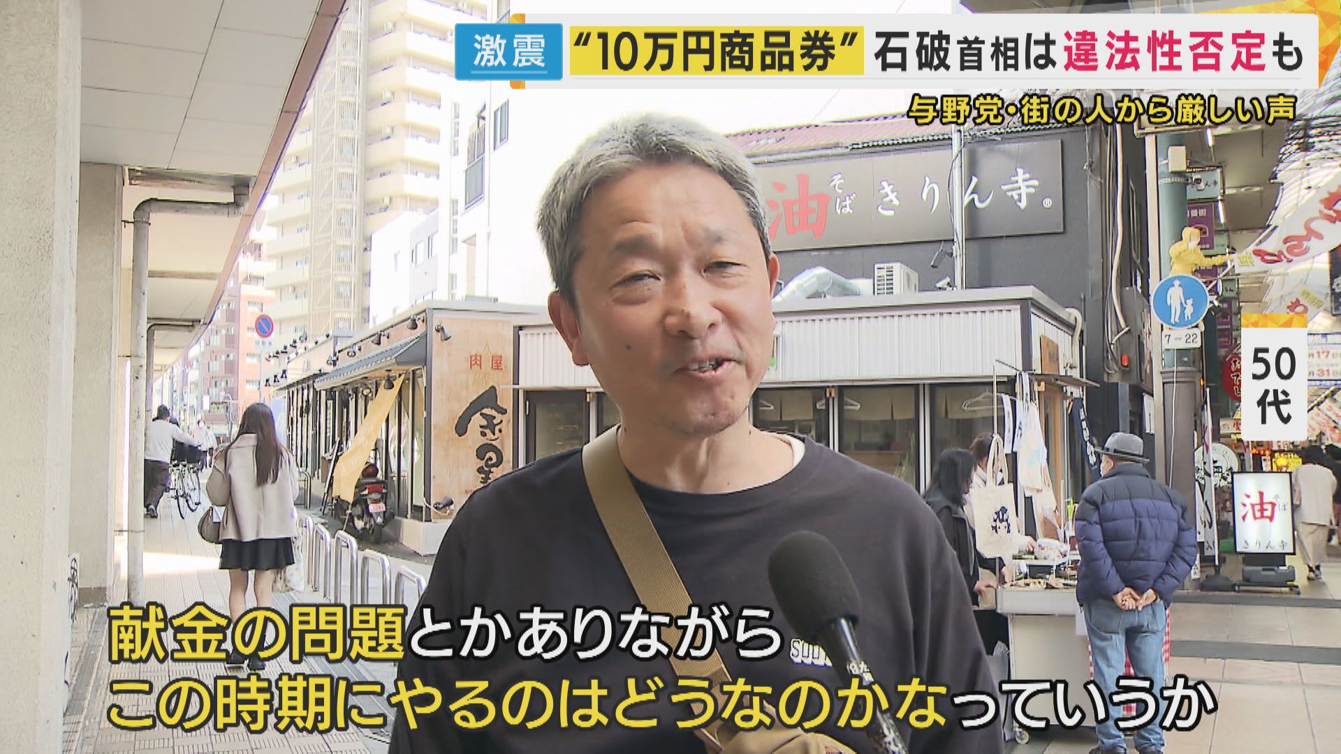 石破首相が自民党の新人議員に10万円分の商品券を配布していた問題。“クリーン”な政治を期待していた街の人からも驚きや疑問の声が出ています。