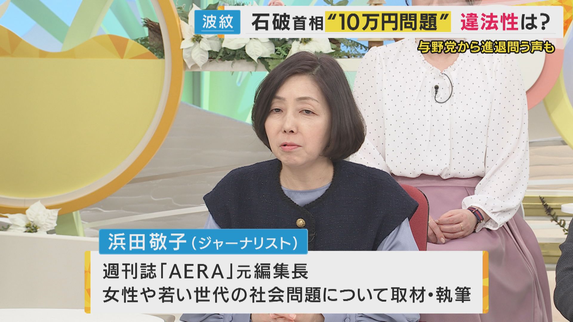 【ジャーナリスト 浜田敬子さん】「政治家としてどうなのかという姿勢が問われてくるのだと思います。まず一つは金銭感覚ですよね。『10万円』というのが、お土産として、そんな多額の物をあげるのか」