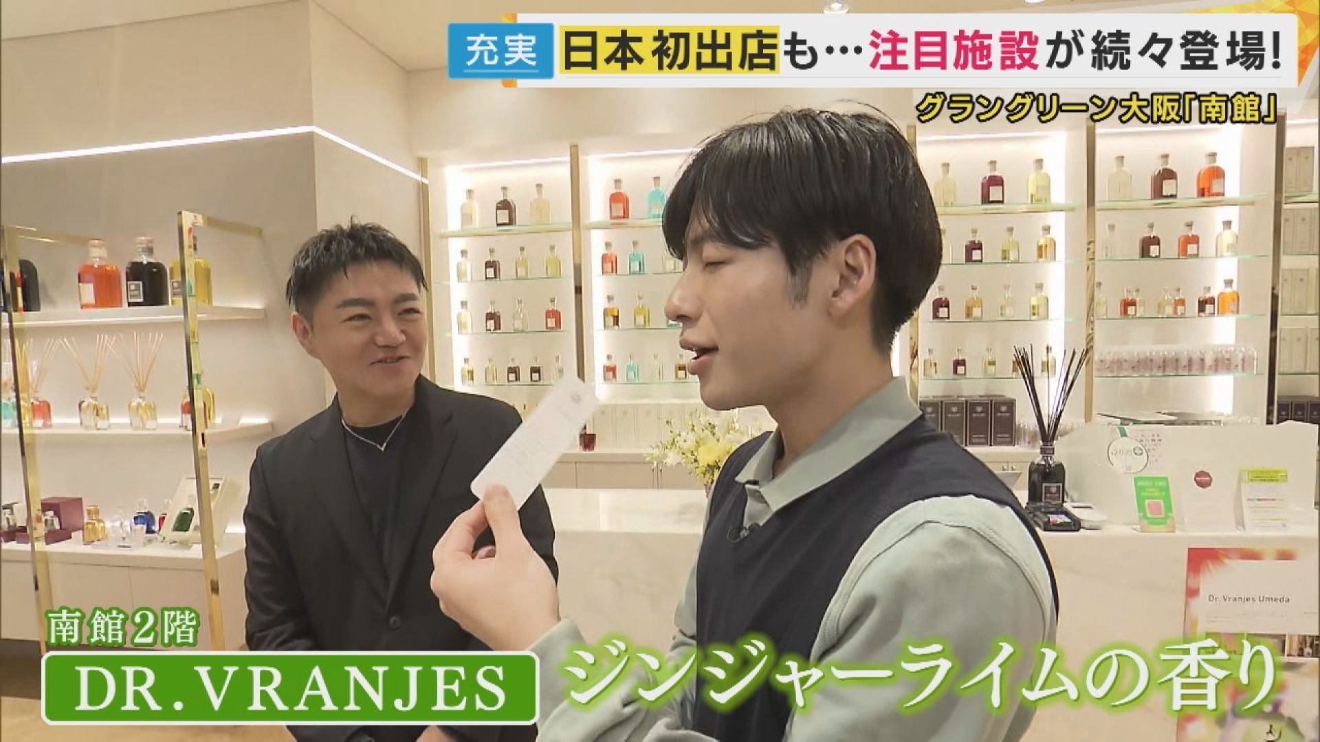 フレグランスのお店で「ジンジャーライムの香り」を嗅がせてもらった秦令欧奈アナウンサー。