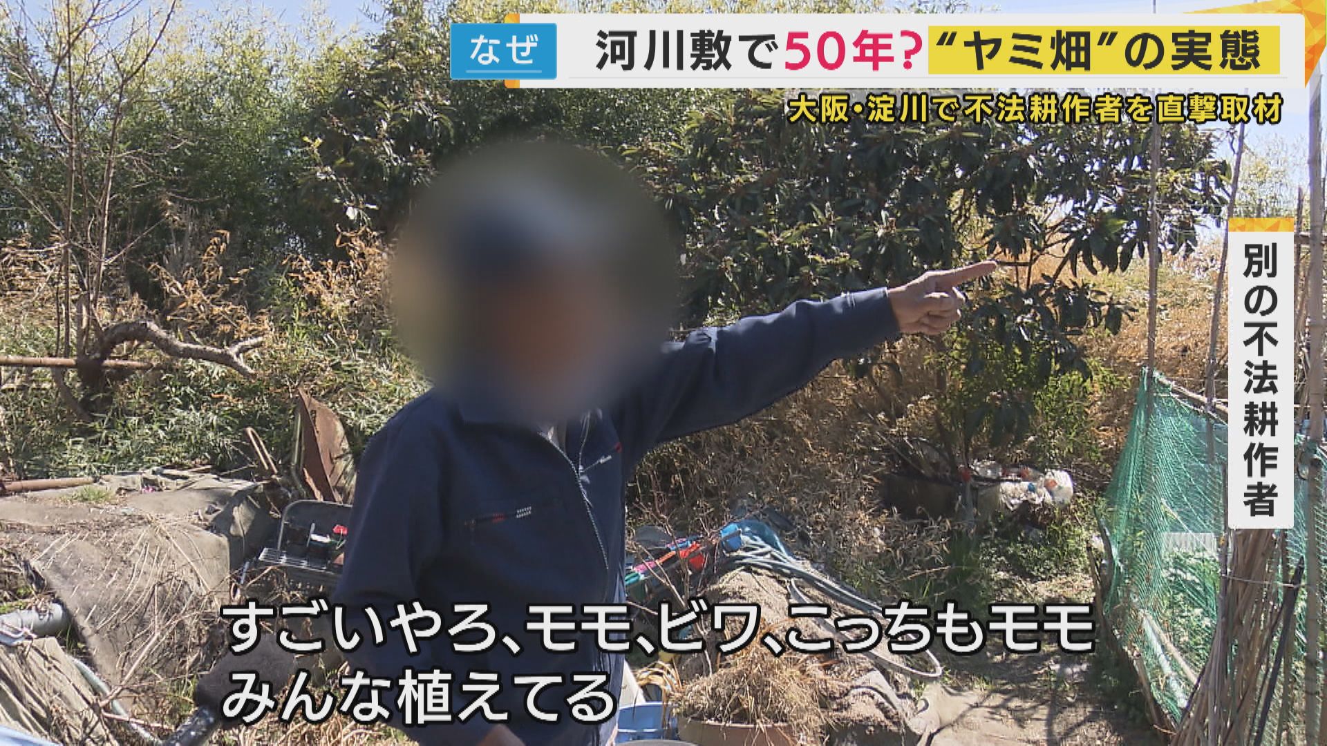 国土交通省によると、この周辺で不法耕作が始まったのは約50年前。大阪市旭区にある赤川地区の河川敷では、いまも10人ほどが違法に野菜などを作っているということです。
