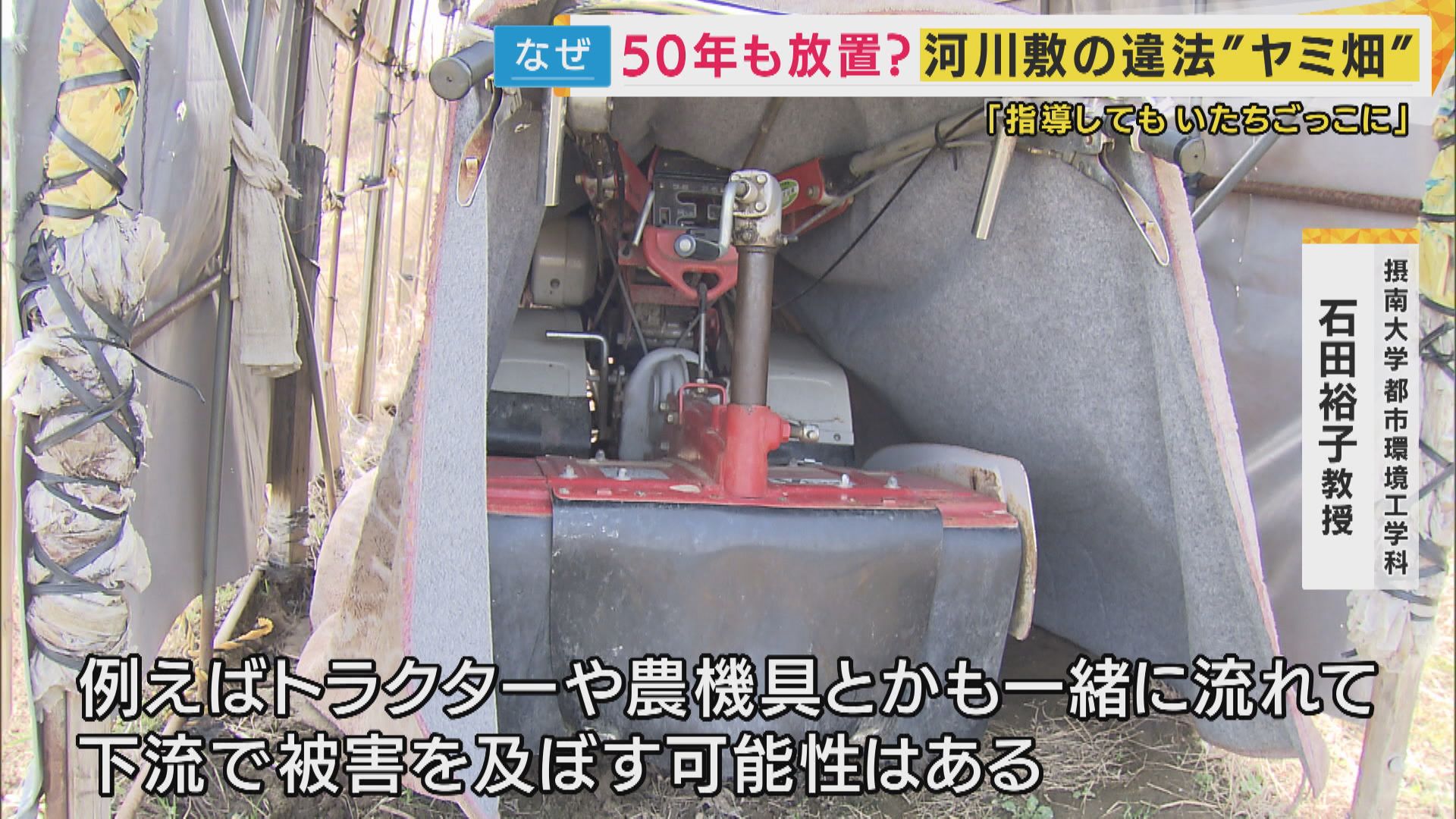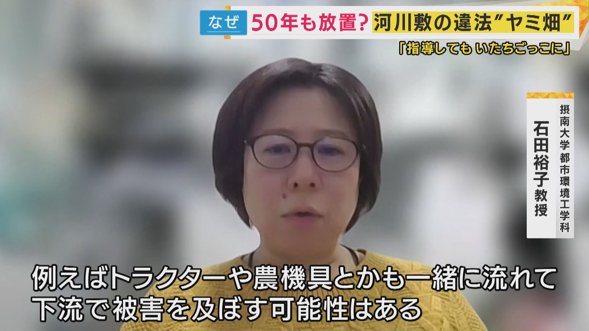 現状は『ヤミ畑』での耕作は、河川法違反で「1年以下の懲役または50万以下の罰金」になる恐れがあるということです。