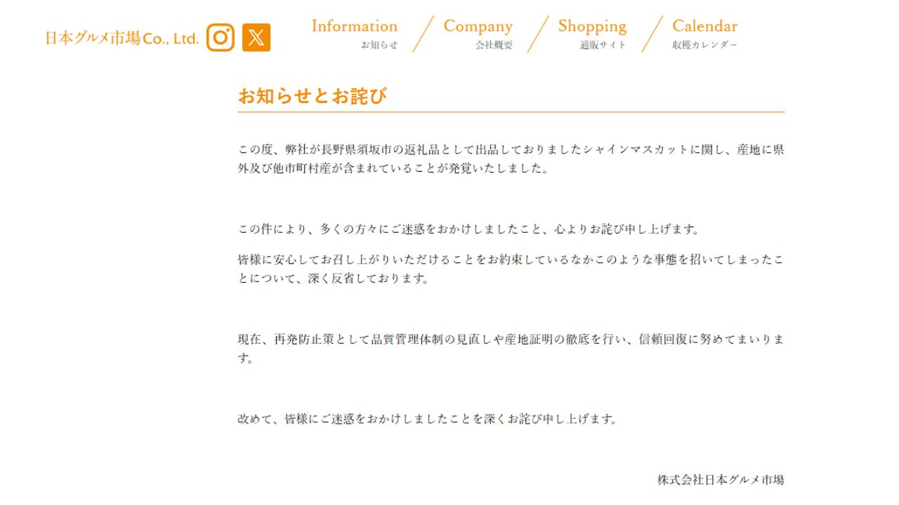 和歌山の業者がふるさと納税の返礼品「シャインマスカット」の産地を偽装 「山形県産」を「長野県産」など