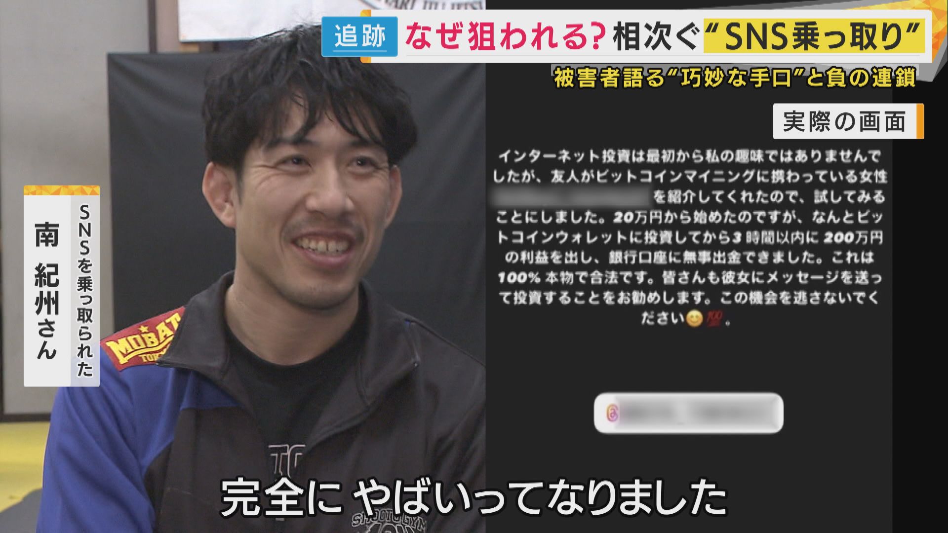 「newsランナー」取材班が向かったのは、和歌山県・白浜町にある総合格闘技のジム。ジムの代表の南紀州(みなみつなくに)さんは3月、SNS乗っ取りの被害に遭いました。