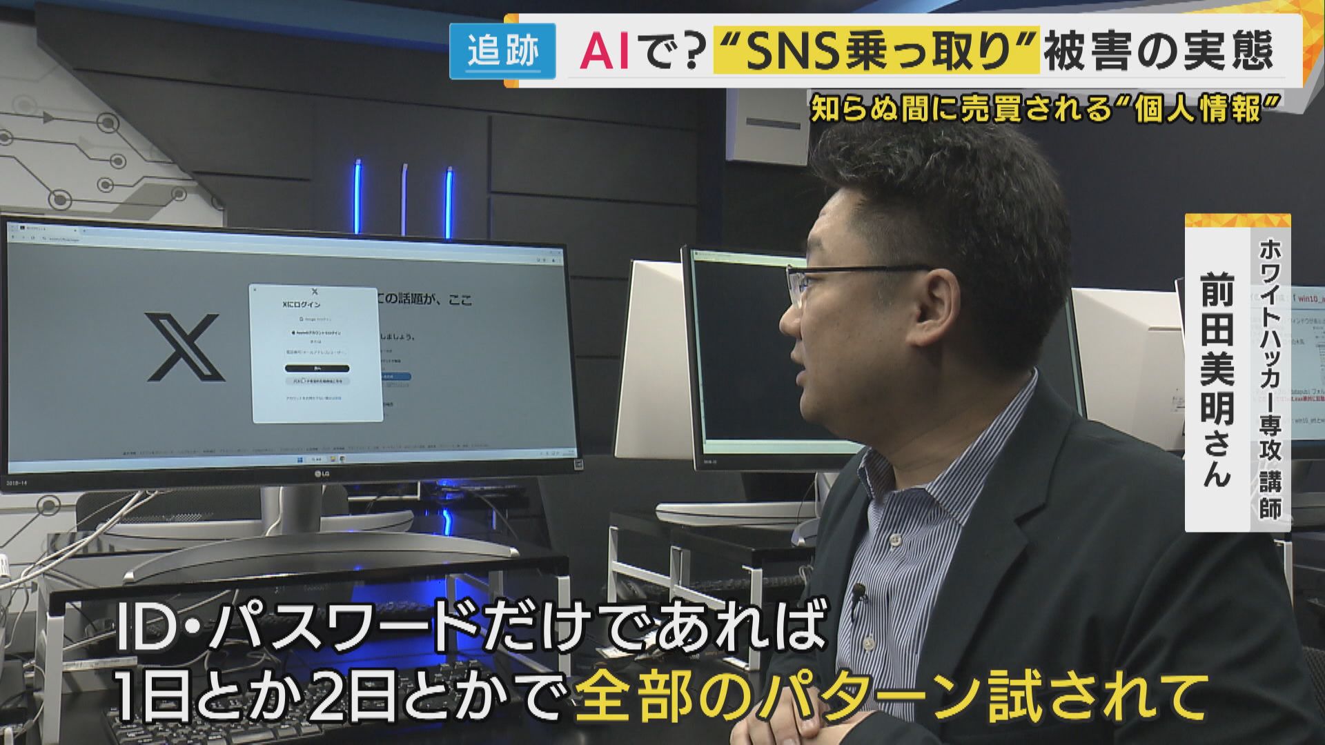 【ホワイトハッカー専攻講師 前田美明さん】「ID・パスワードだけであれば、1日とか2日とかで全部のパターン試されて、ログインされる可能性がある。数字と文字だけであれば、おそらく1時間ないうちに全部、8桁ぐらいであれば終わります」