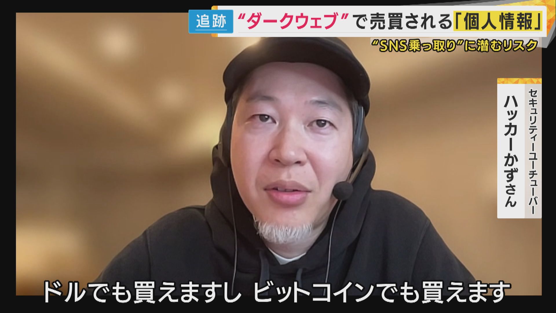 【セキュリティユーチューバー ハッカーかずさん】「最終目的は金銭目的ですね。ダークウェブと呼ばれるもう特殊なツールでしかアクセスできない、匿名化されたところで、そういうアカウント情報が売られるというところがありますね」