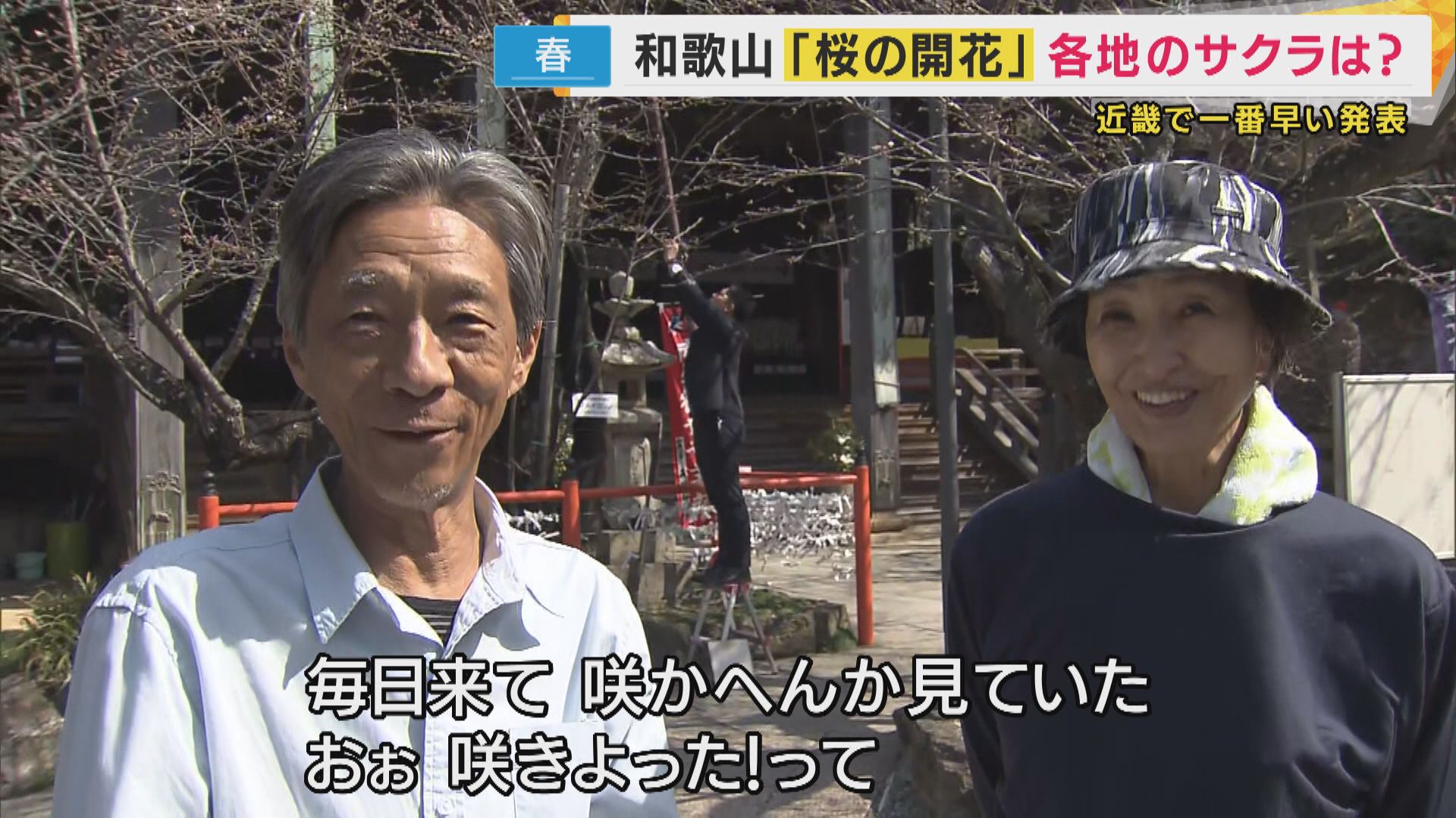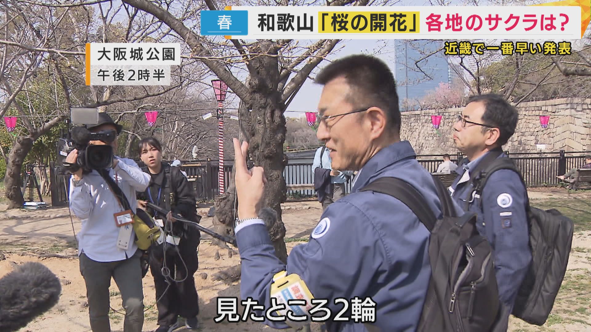 標本木の5輪以上の花が開くと、「開花発表」となり、ことしは、和歌山が、近畿地方では最も早い開花となりました。