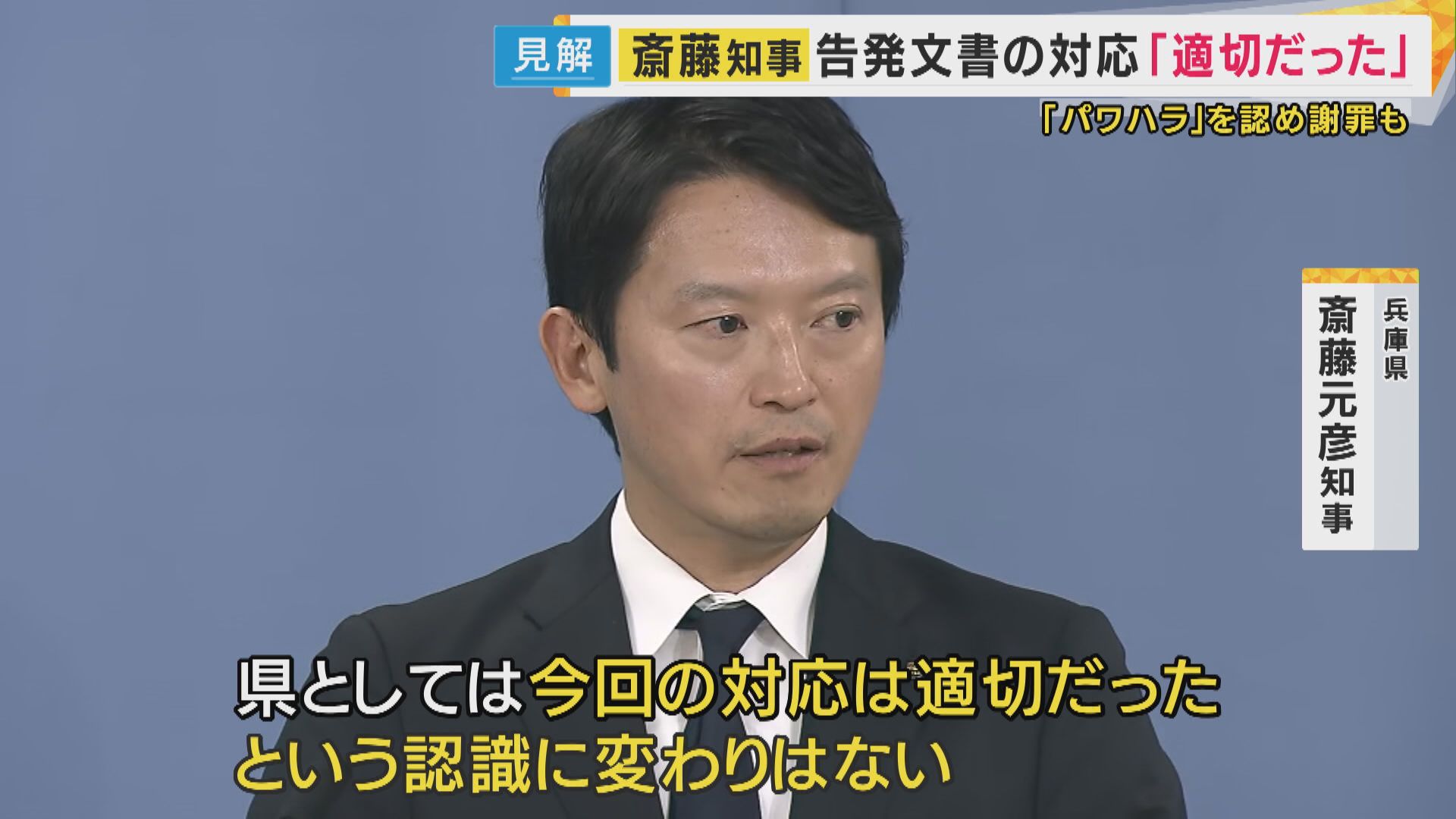 “パワハラ”認め謝罪した斎藤知事 告発文書の対応「適切だった」と改めて主張 告発者の処分撤回も否定