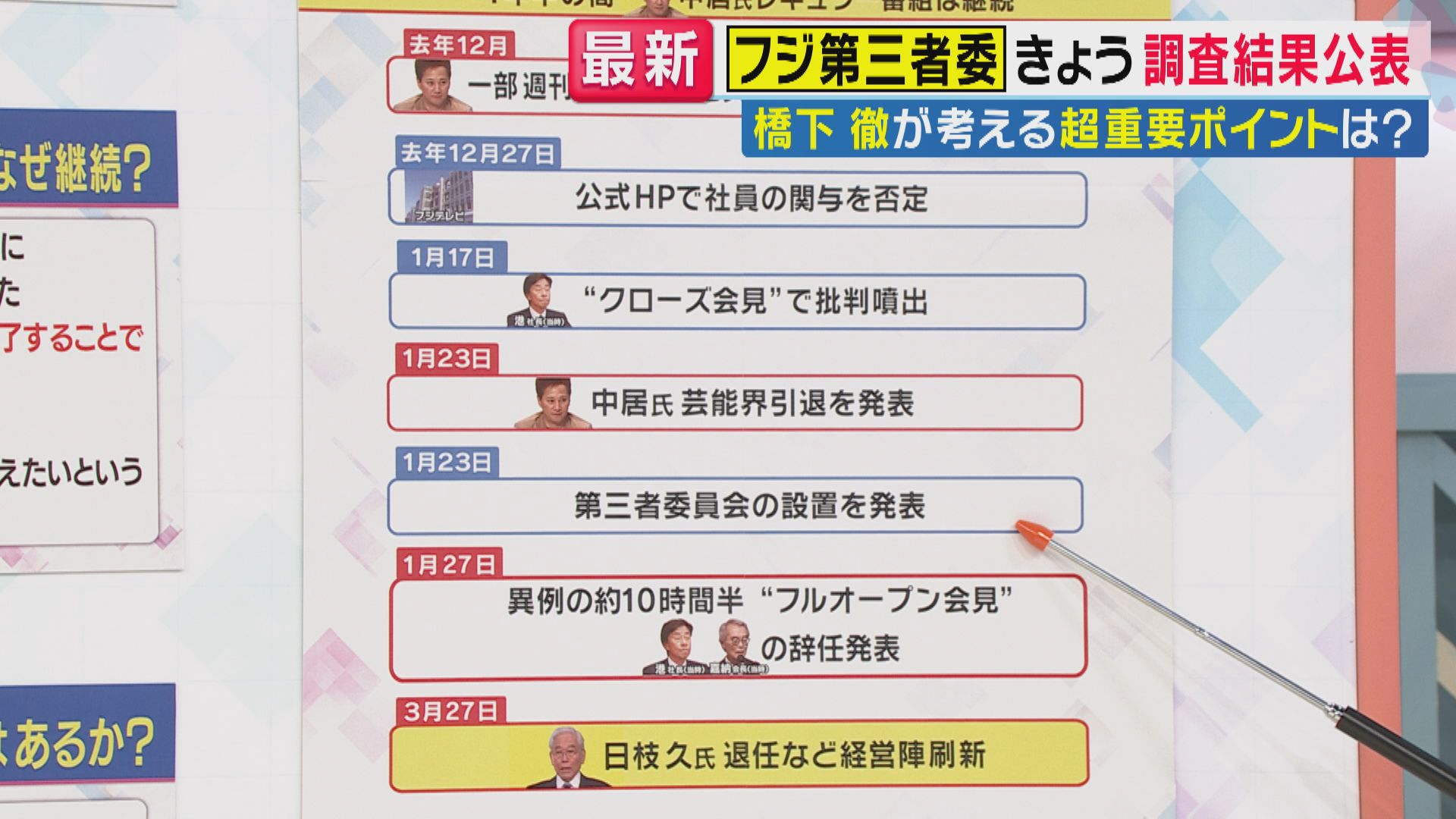 3月27日、日枝久氏の退任が発表され、経営陣が刷新されました。このタイミングというのが、第三者委員会の調査結果の公表前に行われたということも議論を呼びました。