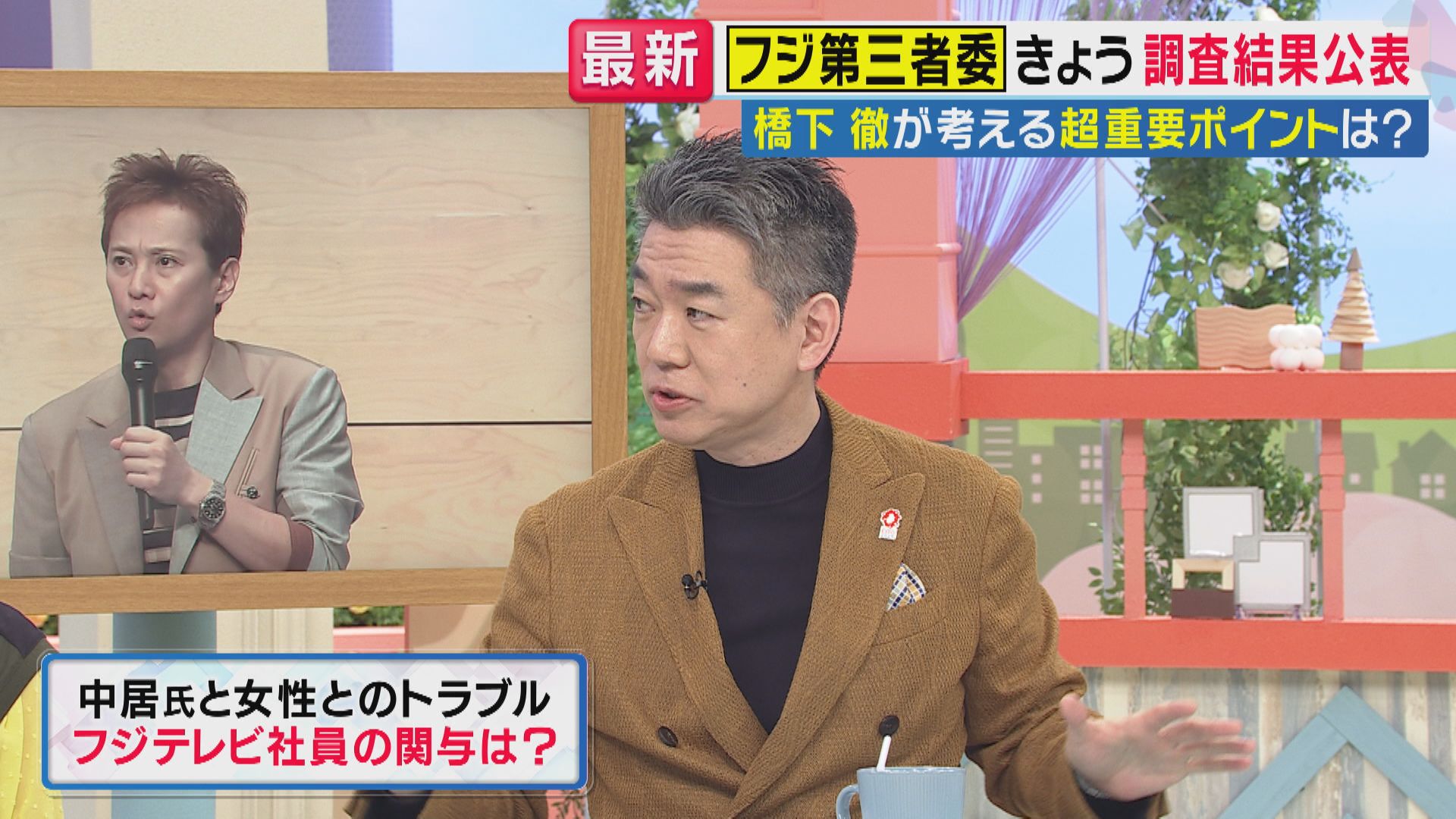 関西テレビ「旬感LIVEとれたてっ!」に出演した橋下徹氏は、「”中居氏トラブル”がどのようなものだったかによって、フジテレビの対応が評価できるので、トラブルの内容について、第三者委員会の事実認定が重要」と指摘しました。